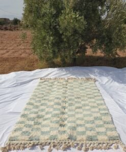 Checkered Rug Beni Ourain Moroccan Green Carpet | 8×5’9 Ft | 2,43×1,80 m | DAMA | 100% wool handmade