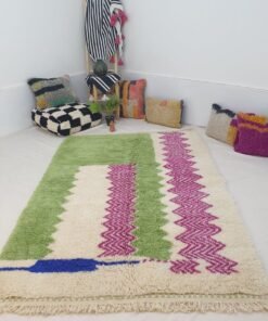 Moroccan Beni Ouarain White & Blue Rug | AHLA | 9’3 x 6’6 Ft | 2,83×2,00 m | 100% wool handmade