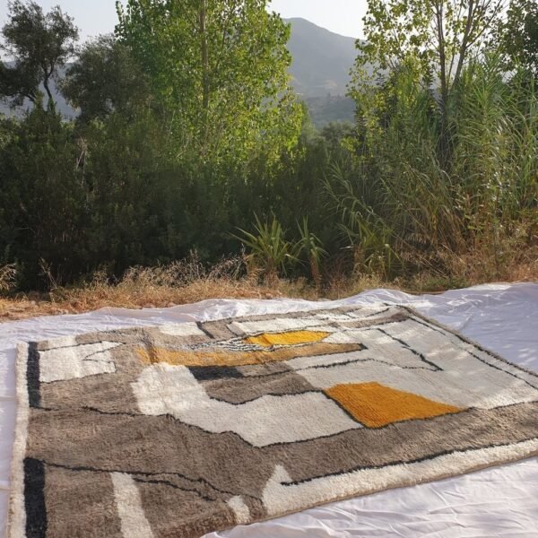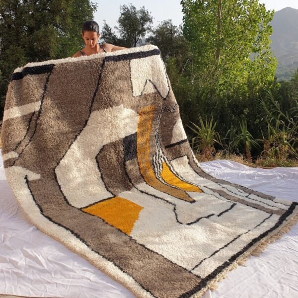 The classic Beni Ouarain, the best rug for all interiors and all designs. Ait Ouaraïn is small but famous tribe in the east of Taza city in the Middle atlas, they only use soft and thick natural wool to make the best handmade spark for your space. The colors and styles are inspired from the snowy and Rocky Mountains of the middle atlas.