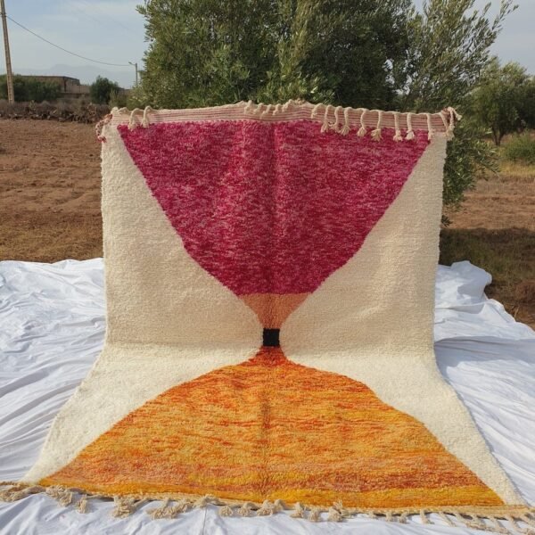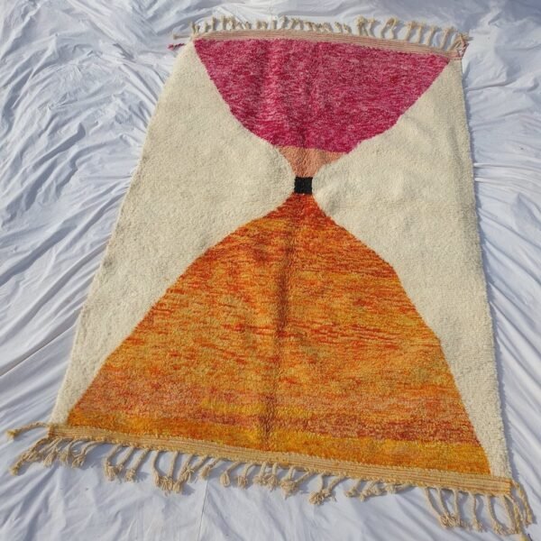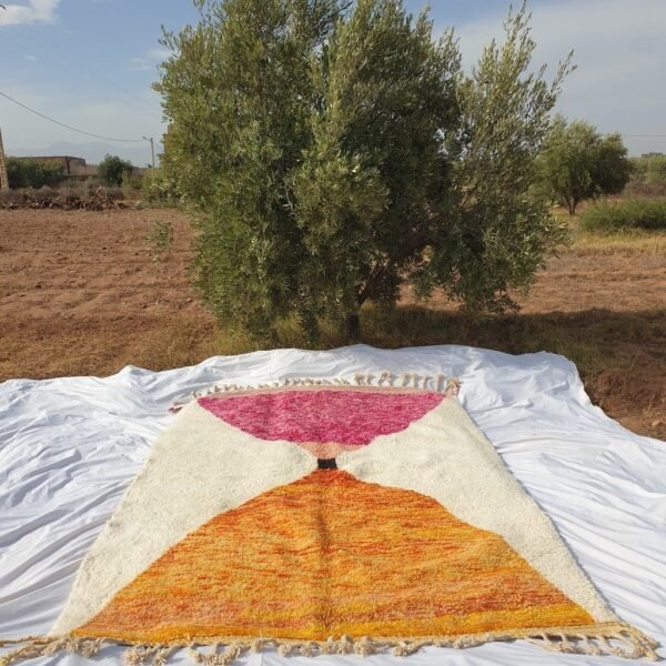 Beni Ouarain Moroccan Rug Orange Pink Authentic and Soft | 9’9 x 6’7 Ft | 3×2 m | JABAL | 100% wool handmade