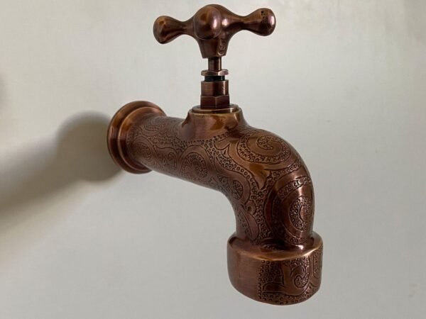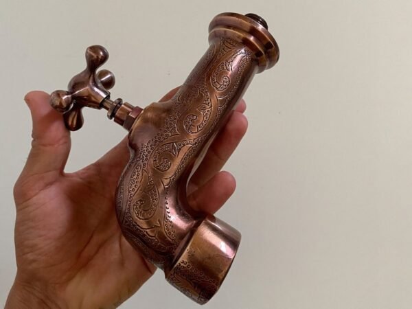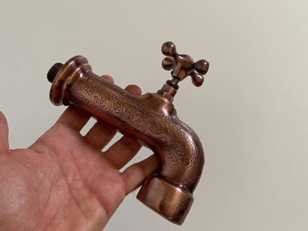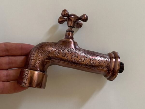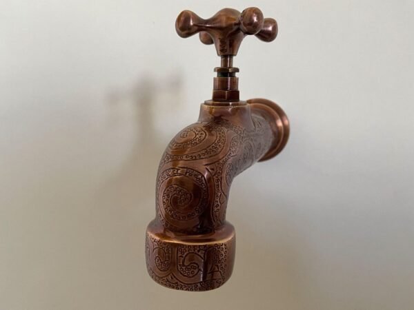 This Faucet is 100% handmade of solid unlacquered Brass with Dark Copper Finish, it will add an elegant, charming and antique decoration to your space.