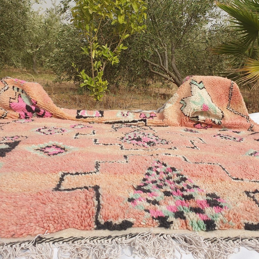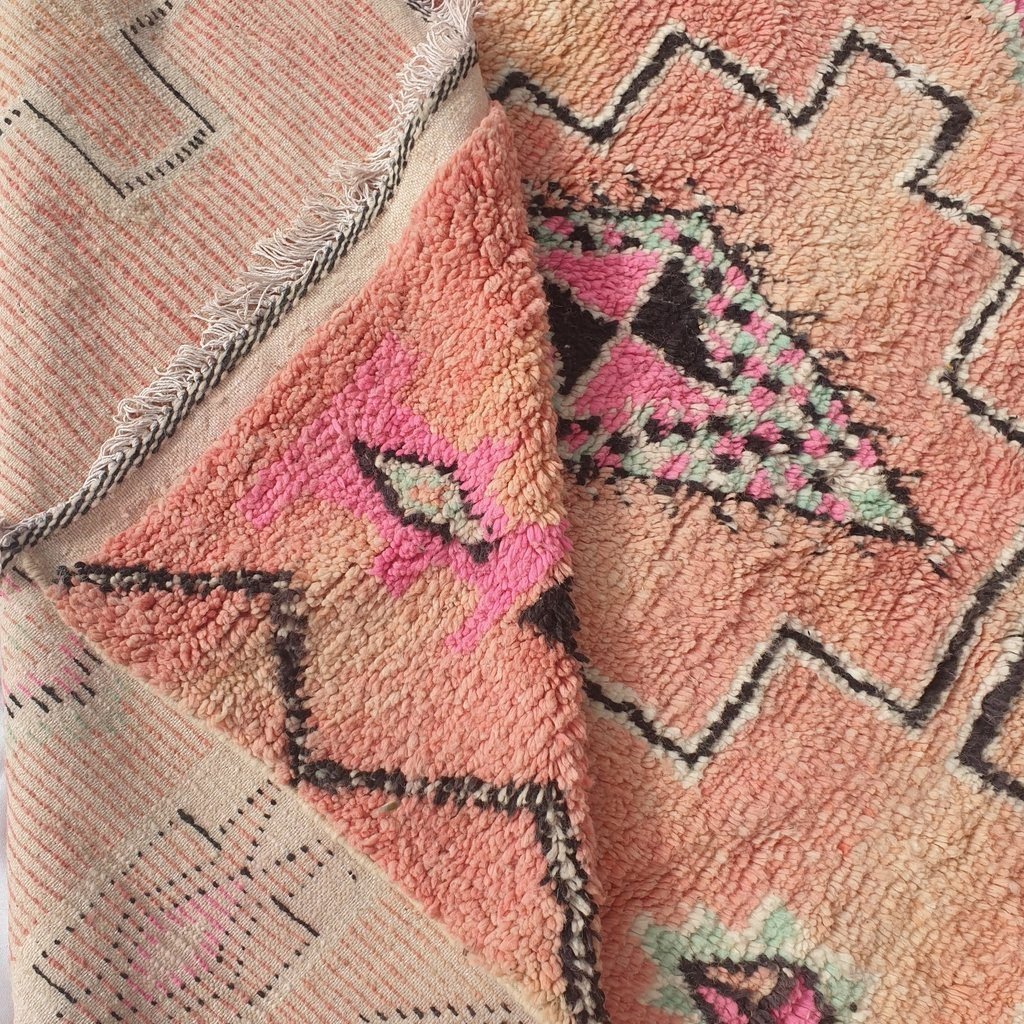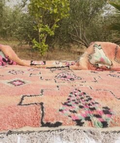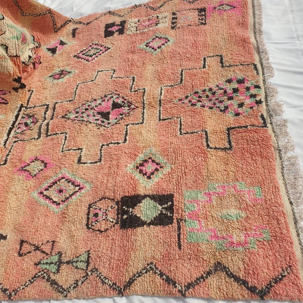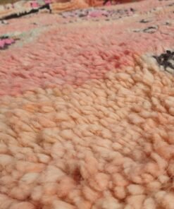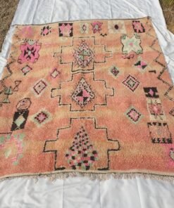 Boujaad rugs originally woven on traditional looms by Berber women in the Atlas Mountains of Morocco. These rugs are all individually handcrafted, each rug is special, unique and different, and you can never find the same pattern. They are made from natural sheep wool with natural dye, and typical knotting techniques practiced by Berber tribes – but with the knot being pulled tighter, those rugs require less wool which allows the weaver to create the intricate geometric patterns things that make Boujaad rugs famous and desired by the whole word and perfect for any indoor or outdoor style.