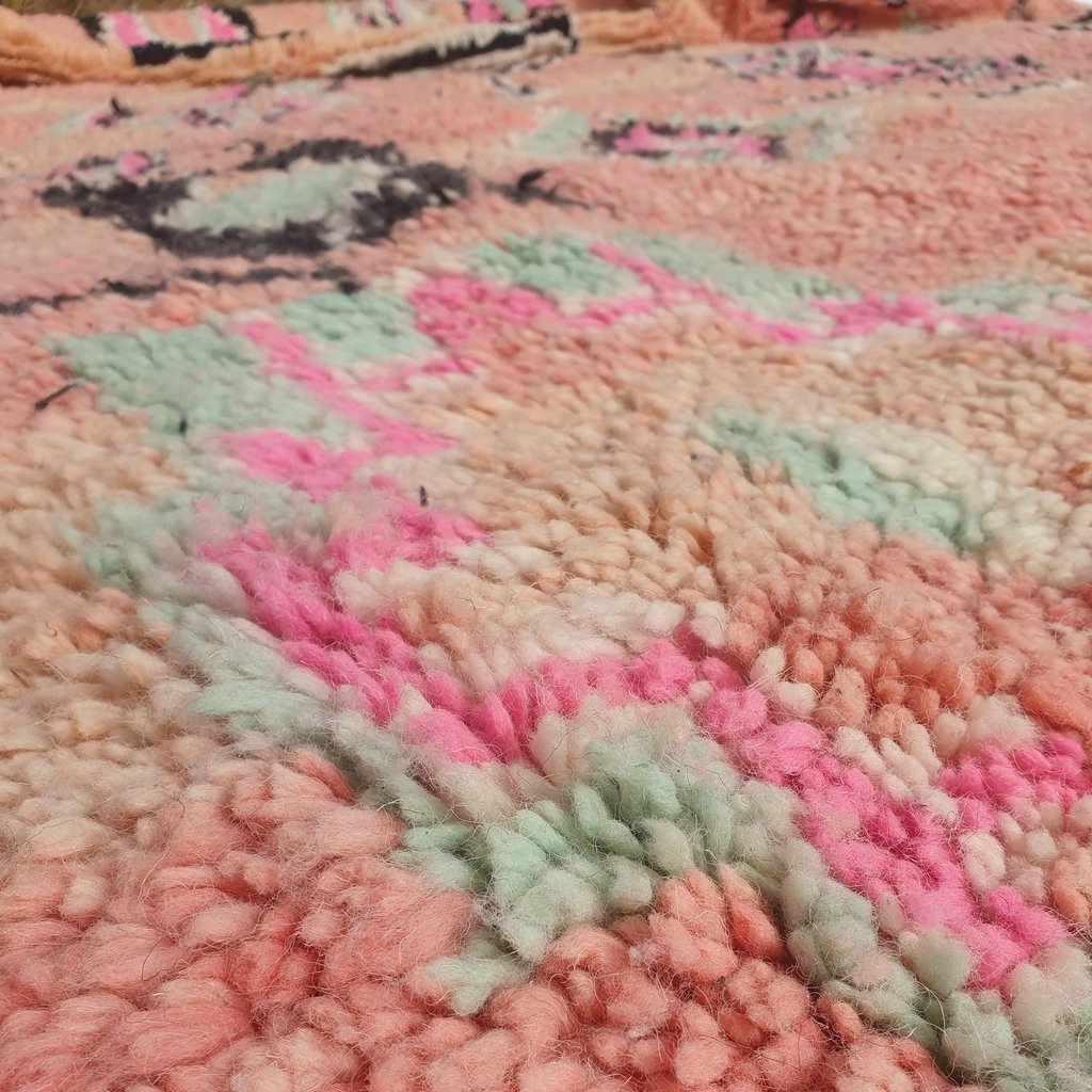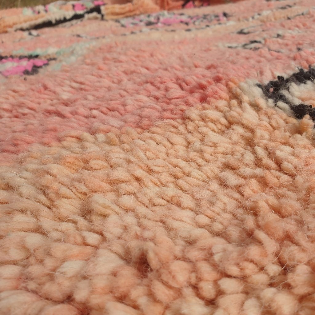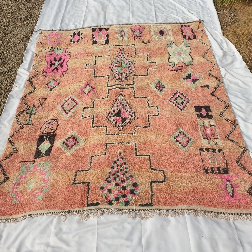 Boujaad rugs originally woven on traditional looms by Berber women in the Atlas Mountains of Morocco. These rugs are all individually handcrafted, each rug is special, unique and different, and you can never find the same pattern. They are made from natural sheep wool with natural dye, and typical knotting techniques practiced by Berber tribes – but with the knot being pulled tighter, those rugs require less wool which allows the weaver to create the intricate geometric patterns things that make Boujaad rugs famous and desired by the whole word and perfect for any indoor or outdoor style.