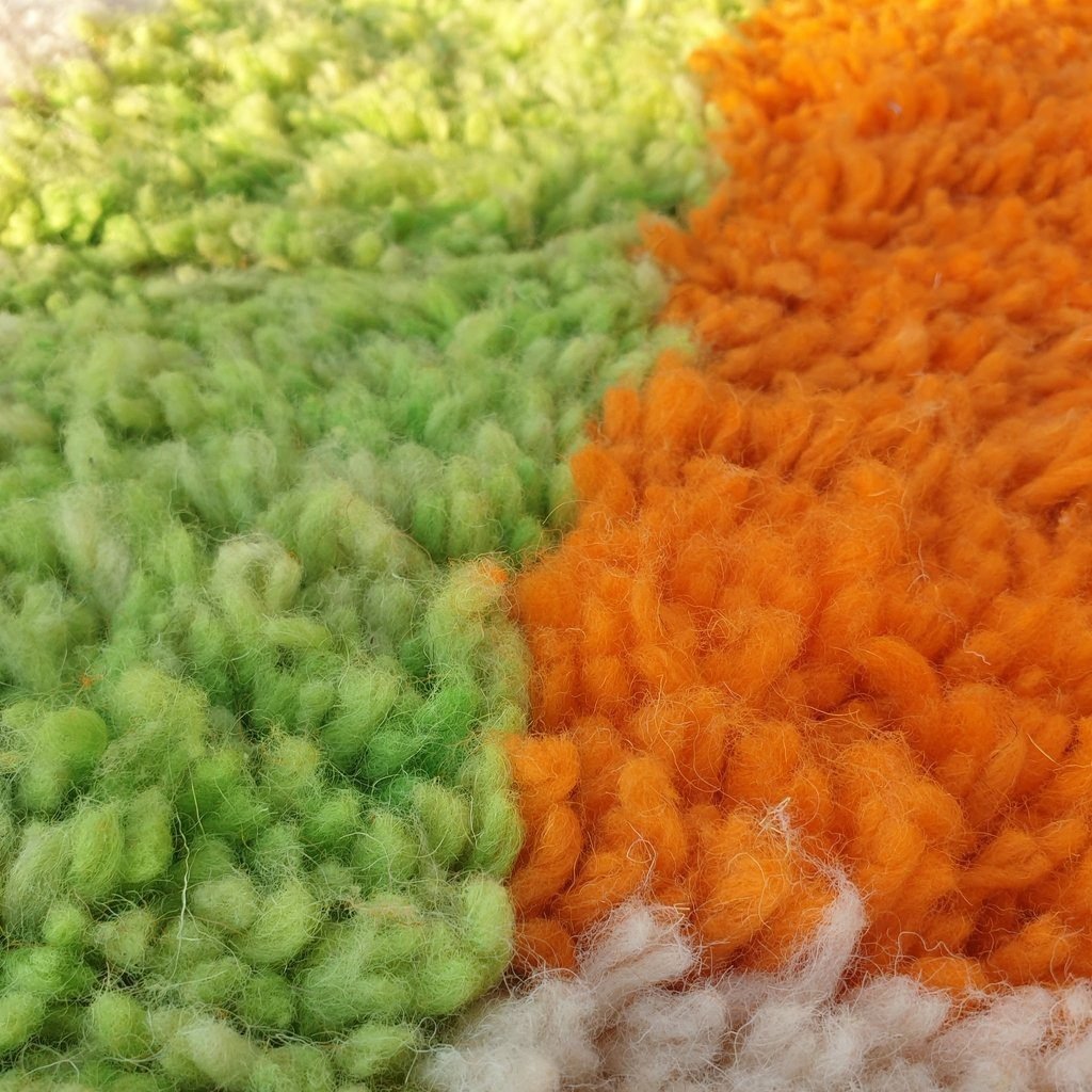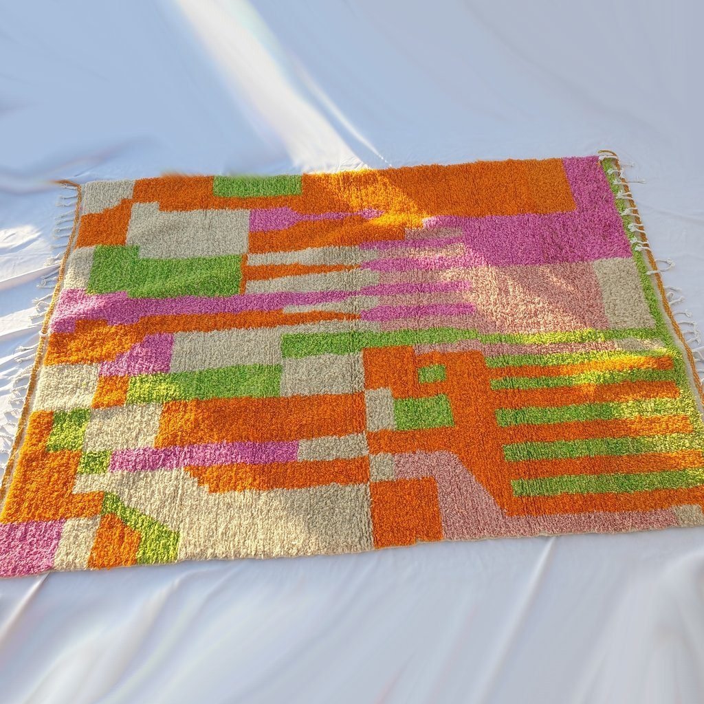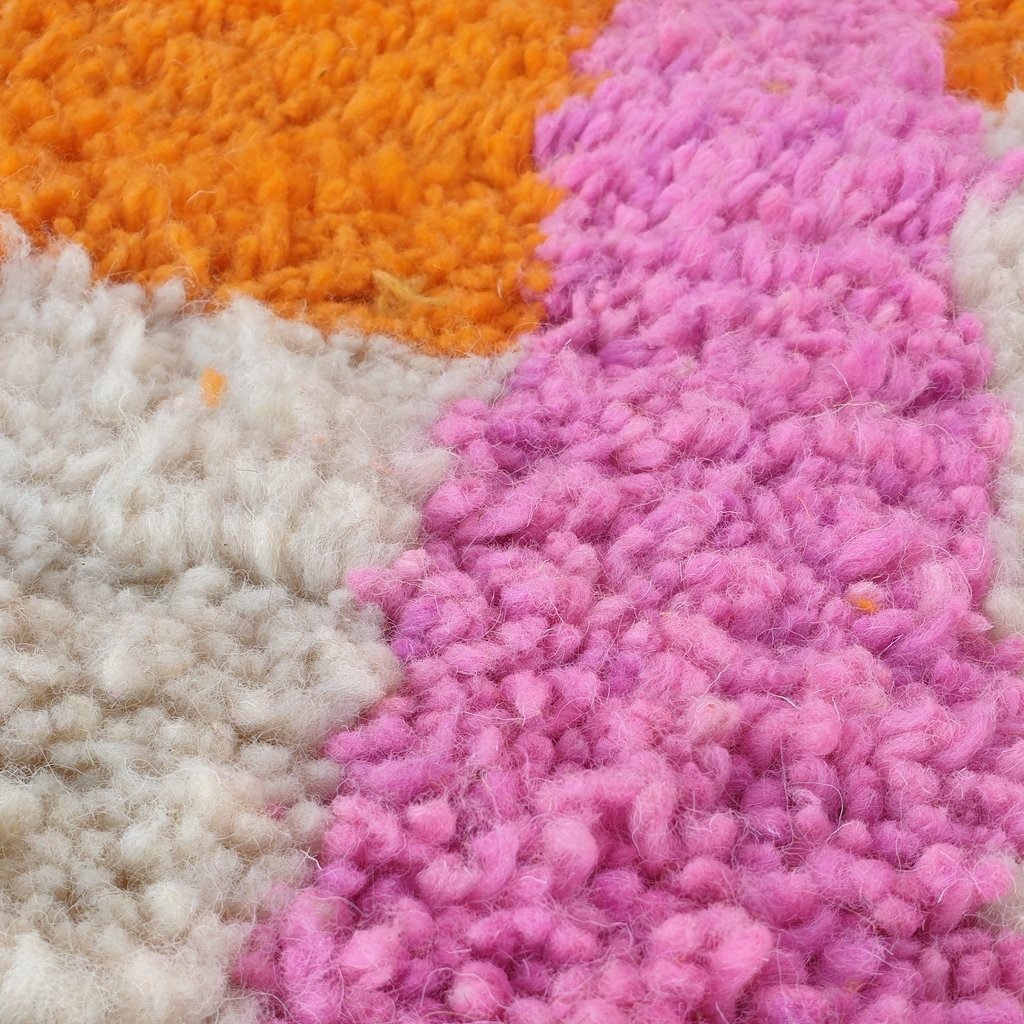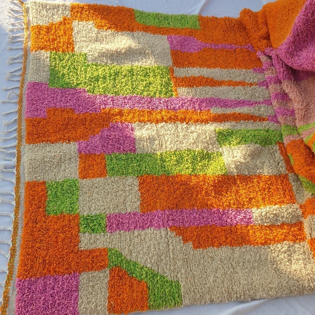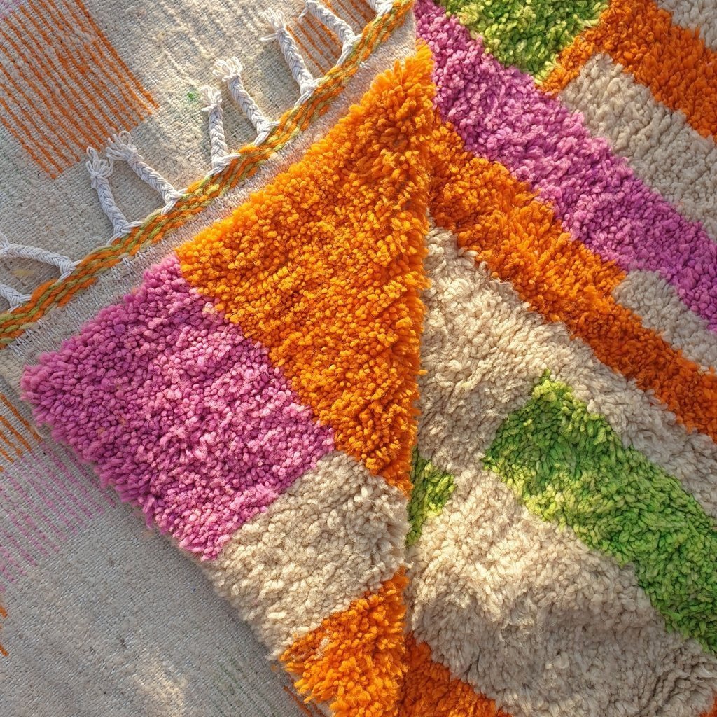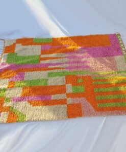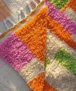Boujaad rugs originally woven on traditional looms by Berber women in the Atlas Mountains of Morocco. These rugs are all individually handcrafted, each rug is special, unique and different, and you can never find the same pattern. They are made from natural sheep wool with natural dye, and typical knotting techniques practiced by Berber tribes – but with the knot being pulled tighter, those rugs require less wool which allows the weaver to create the intricate geometric patterns things that make Boujaad rugs famous and desired by the whole word and perfect for any indoor or outdoor style.