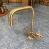 Gooseneck Bathroom Vanity Solid Brass Faucet, Unlacquered Brass with Simple Cross Handles Hot and Cold Water Tap , Brass Kitchen Faucets