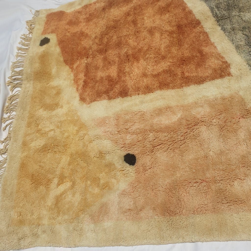 From Beni m™rirt a small town in khenifra, in the middle atlas; the luxurious rug, made with the best quality of sheep wool and produced with a lot of skill, Mrirt rugs are made, they are called also the NOBLE RUGS, are particularly densely knotted with double knots and made from exceptional wool quality, as the sheep in this region are particular, Mrirt rugs continue to seduce interior designers and fine connoisseurs by their extremely warm, soft and long piles.