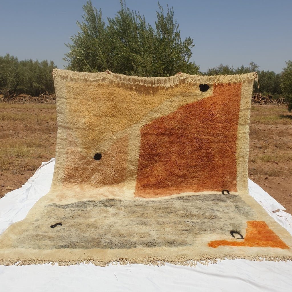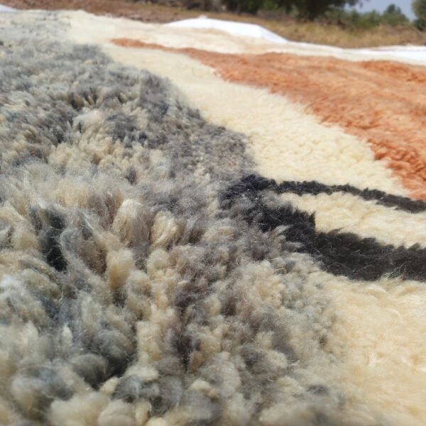The Berber women pack the wool on the vertical loom using a metal comb, which results in a fine and silky texture of the wool that just feels heavenly on the foot, the Mrirt rugs are the most expensive due to the high quality and the quantity of the wool we use.