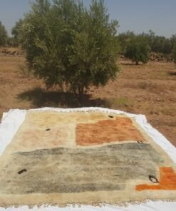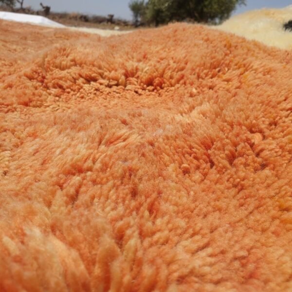 Mrirt rug is a family tradition, it’s made by weavers at home and cleaned by her husband outdoors, he clean the rug 4 times before hanging it under the sun to dry which can take 4 weeks during winter.