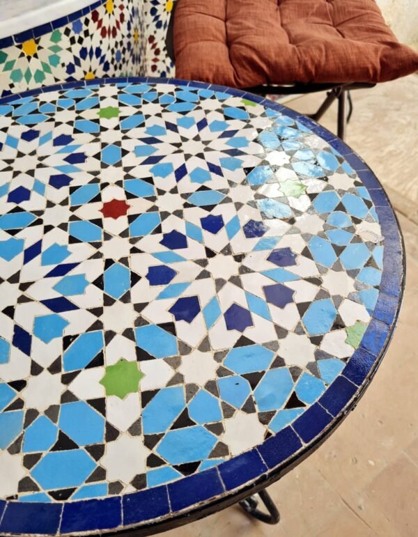 Moving to Zellige, when it bakes for the first time, and the second time with the paint it is given to Nekkach that decides what kind of pattern will be used on it depends on where Zellige will be put. He spreads them flipped in a geometrical pattern based on ancient references such as Karaouiyn, and the king’s palaces…