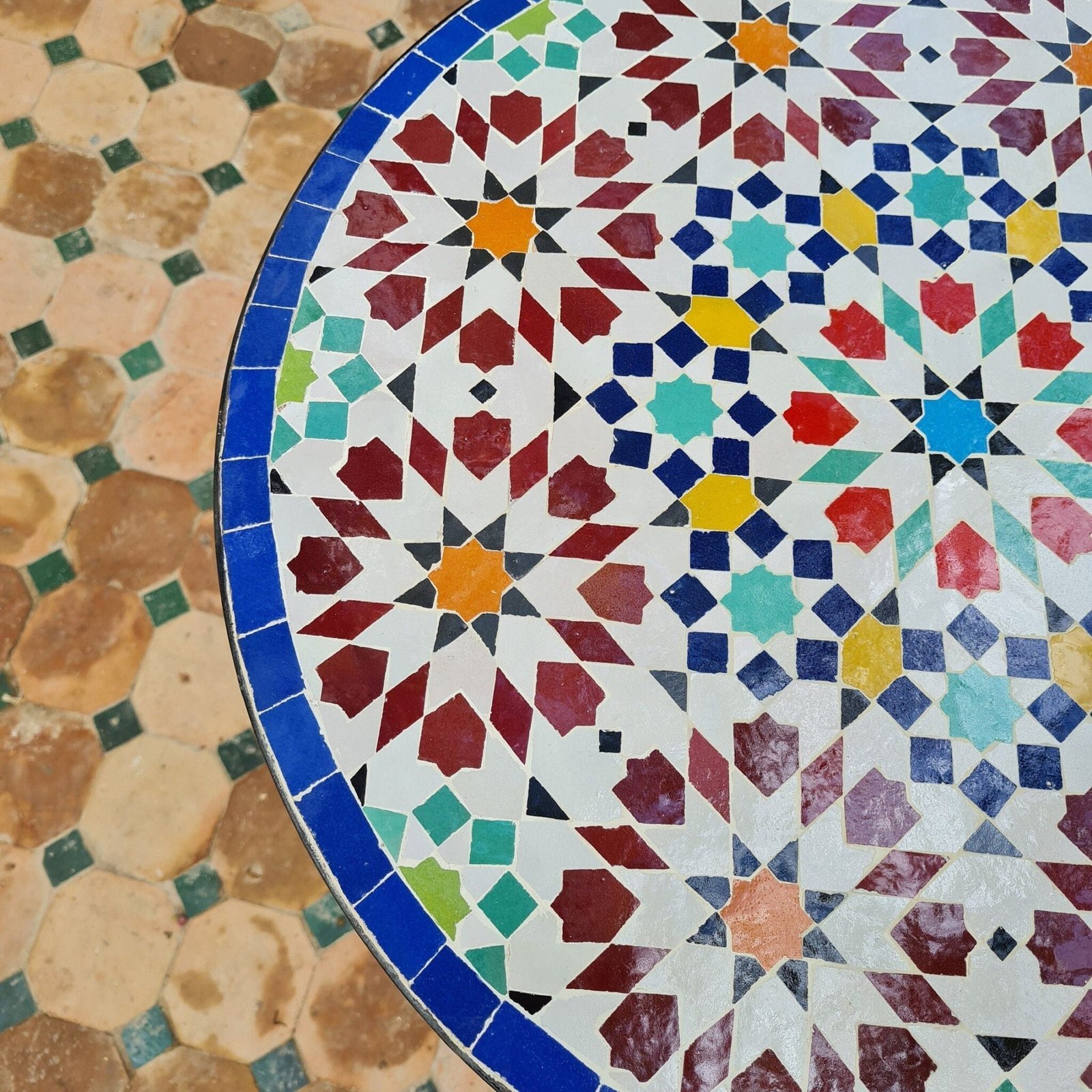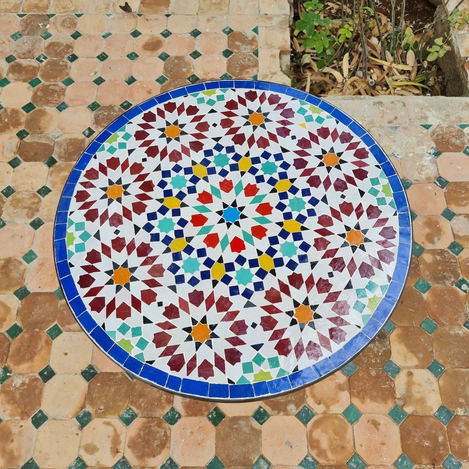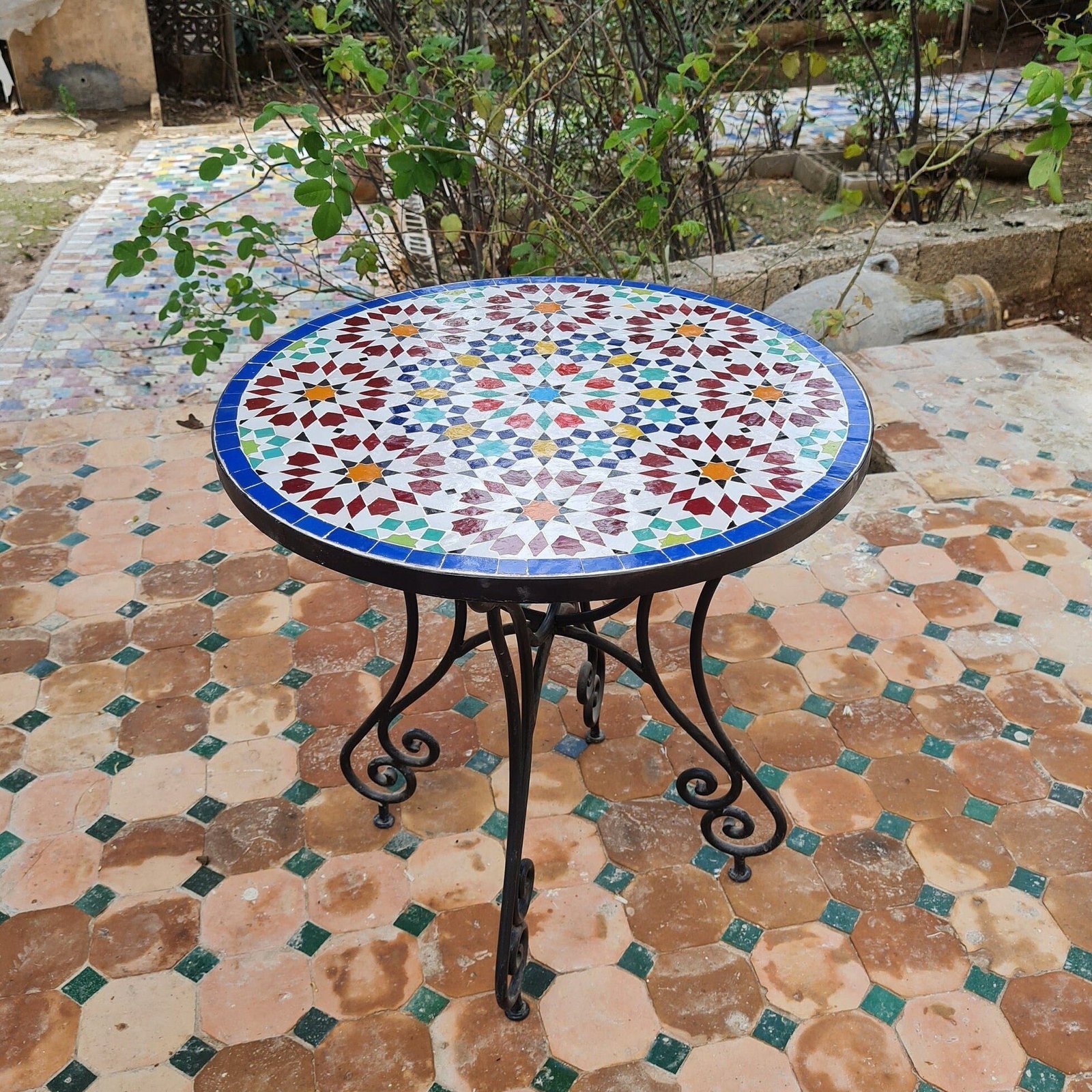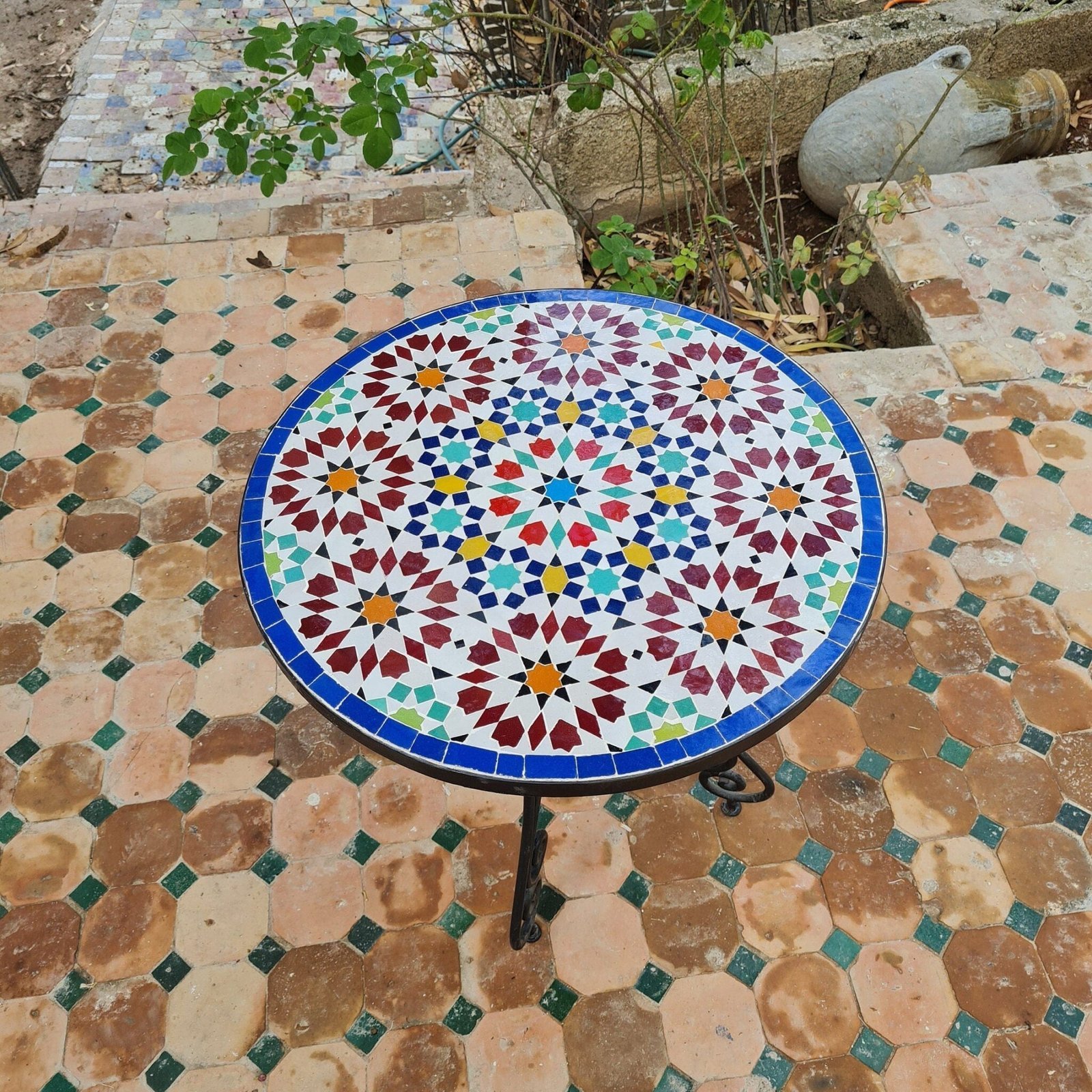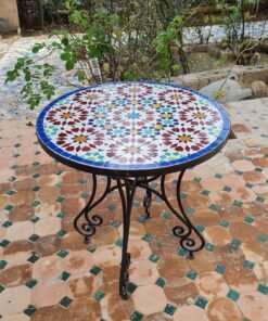 Handmade Outdoor Coffee Table – Complicated Mosaic Pattern Table – Bistro Mosaic Table – Zellige Mosaic Table – Handmade Mosaic Art