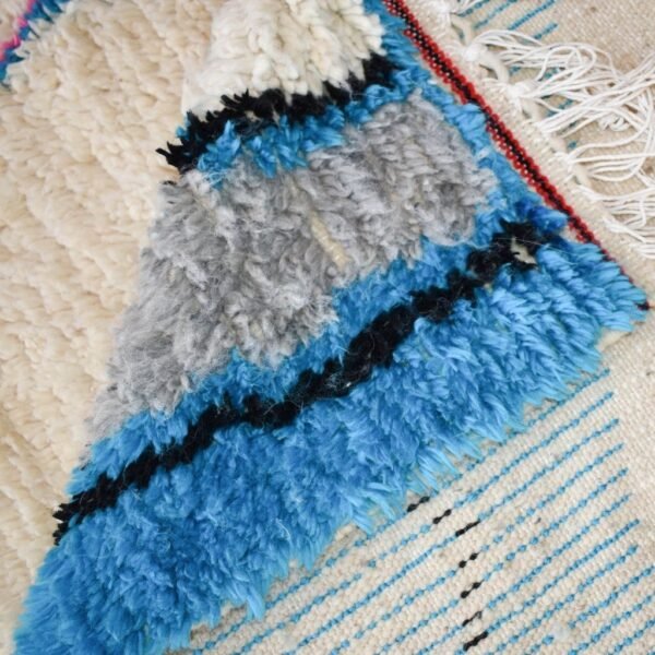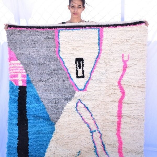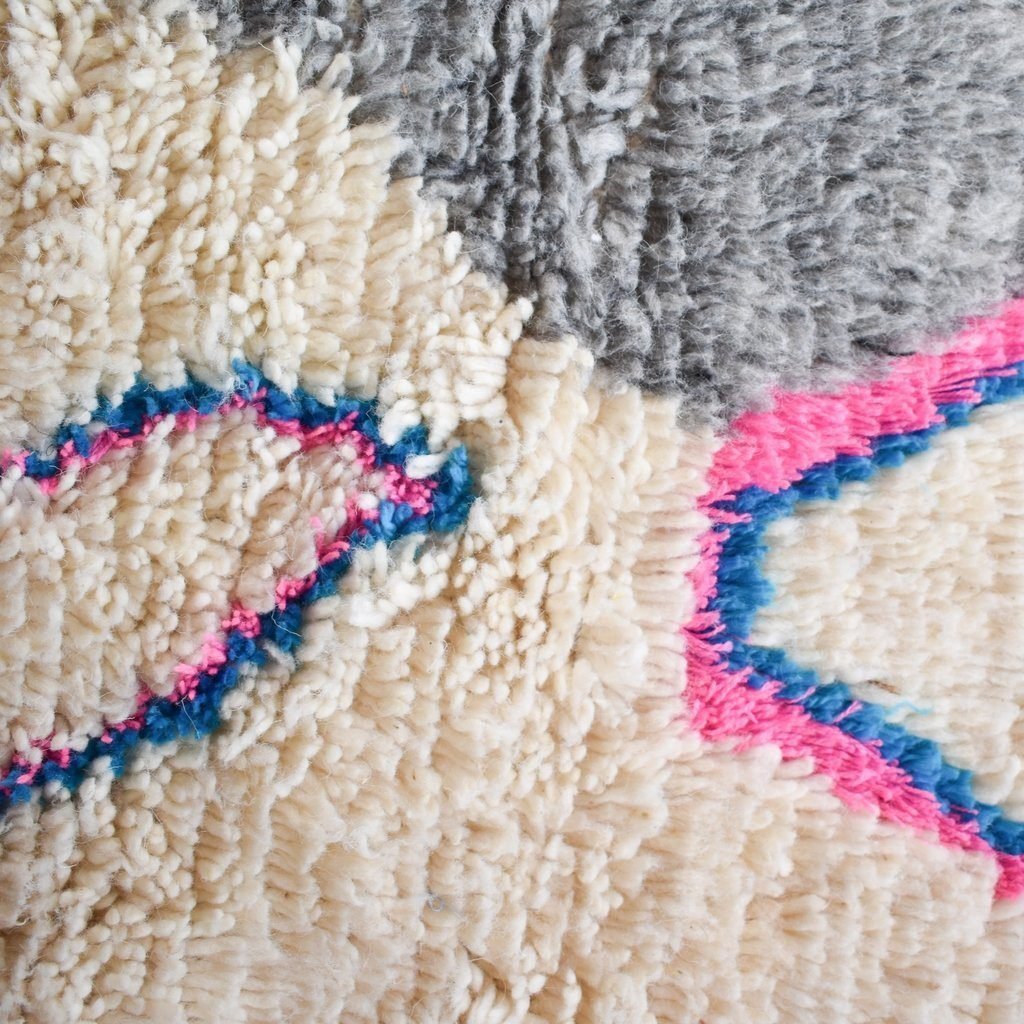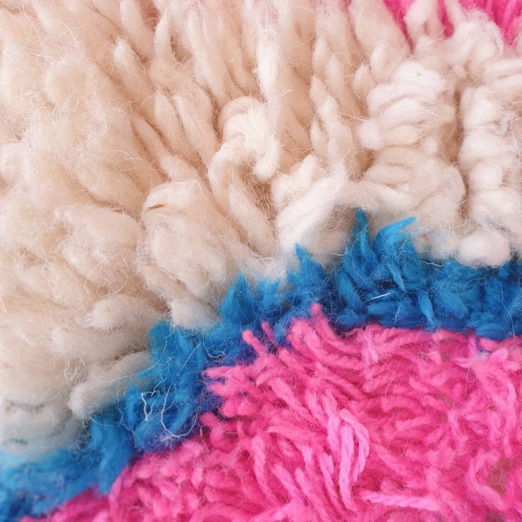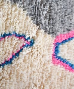 One rug takes lot of time and effort, but can tells a story of life, a story of a woman somewhere in the world trying to make her life and the one of her children better. In the heart of Azilal tribe, located in Demnat a Moroccan Berber region, one of richest parts of the Atlas Mountains, are made those pieces of arts, inspired from the beautiful flowered mountains and the flowing rivers. Azilal, the most beautiful and colorful rug. handmade for self-use or to be a gift during the winter™s long nights. The Azilal rugs reflects the richness of the region. This type of traditional carpets is usually double sided, the fluffy and warmest side for winter, the other side is for summer.