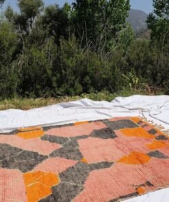 Boujaad rugs originally woven on traditional looms by Berber women in the Atlas Mountains of Morocco. These rugs are all individually handcrafted, each rug is special, unique and different, and you can never find the same pattern. They are made from natural sheep wool with natural dye, and typical knotting techniques practiced by Berber tribes – but with the knot being pulled tighter, those rugs require less wool which allows the weaver to create the intricate geometric patterns things that make Boujaad rugs famous and desired by the whole word and perfect for any indoor or outdoor style.