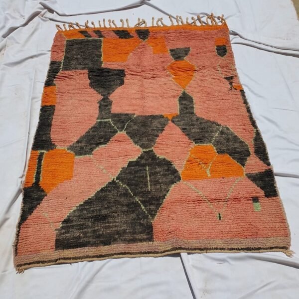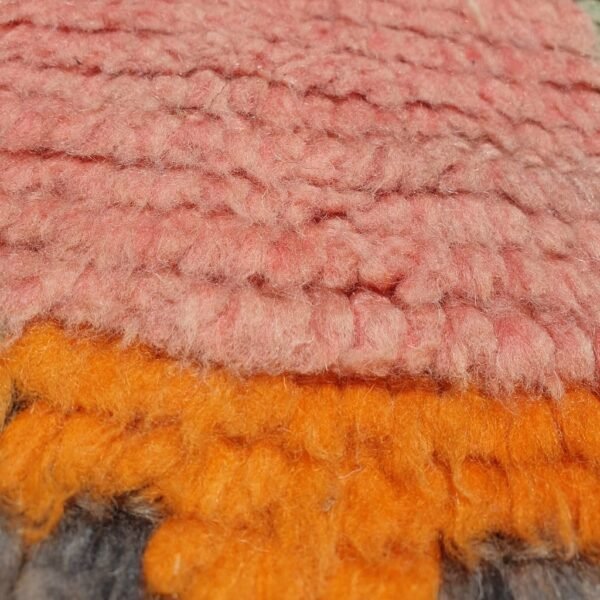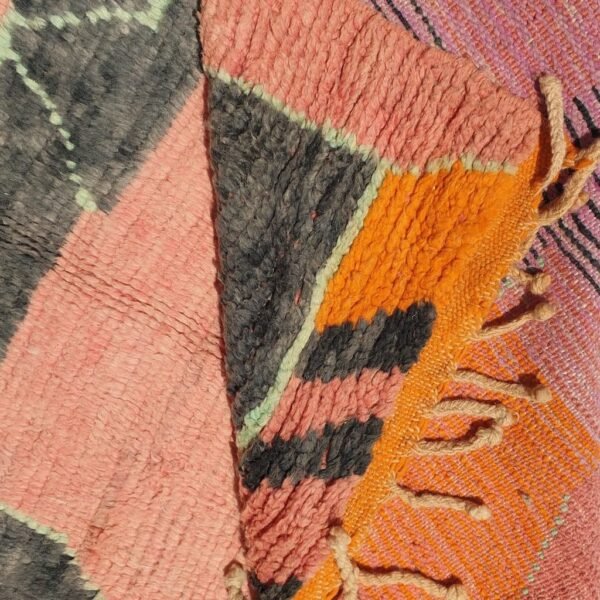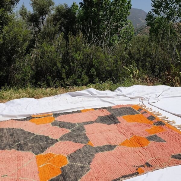 Boujaad rugs originally woven on traditional looms by Berber women in the Atlas Mountains of Morocco. These rugs are all individually handcrafted, each rug is special, unique and different, and you can never find the same pattern. They are made from natural sheep wool with natural dye, and typical knotting techniques practiced by Berber tribes – but with the knot being pulled tighter, those rugs require less wool which allows the weaver to create the intricate geometric patterns things that make Boujaad rugs famous and desired by the whole word and perfect for any indoor or outdoor style.
