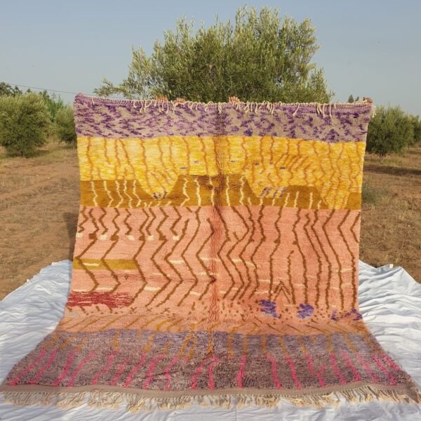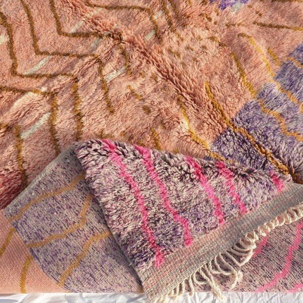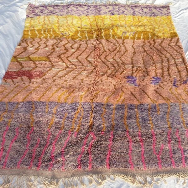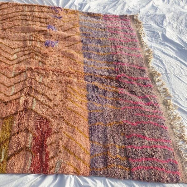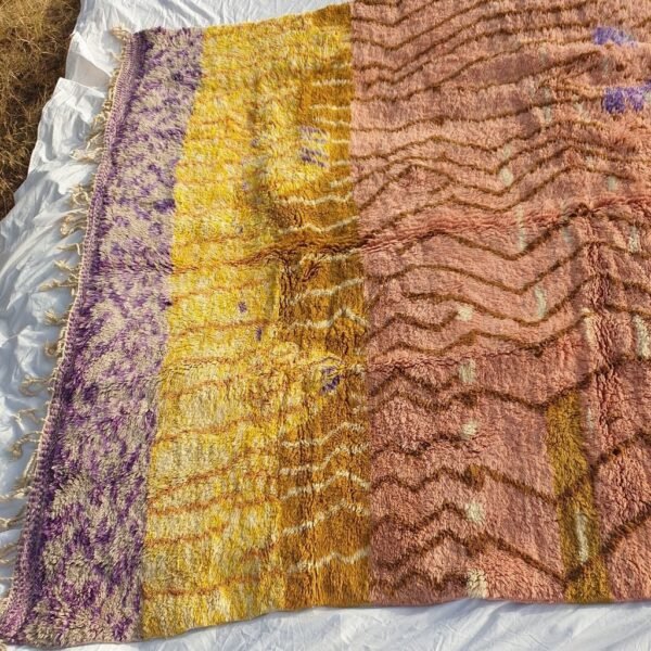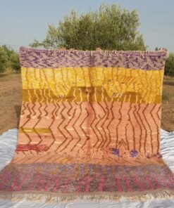 From Beni m’rirt a small town in khenifra, in the middle atlas; the luxurious rug, made with the best quality of sheep wool and produced with a lot of skill, Mrirt rugs are made, they are called also the NOBLE RUGS, are particularly densely knotted with double knots and made from exceptional wool quality, as the sheep in this region are particular, Mrirt rugs continue to seduce interior designers and fine connoisseurs by their extremely warm, soft and long piles.