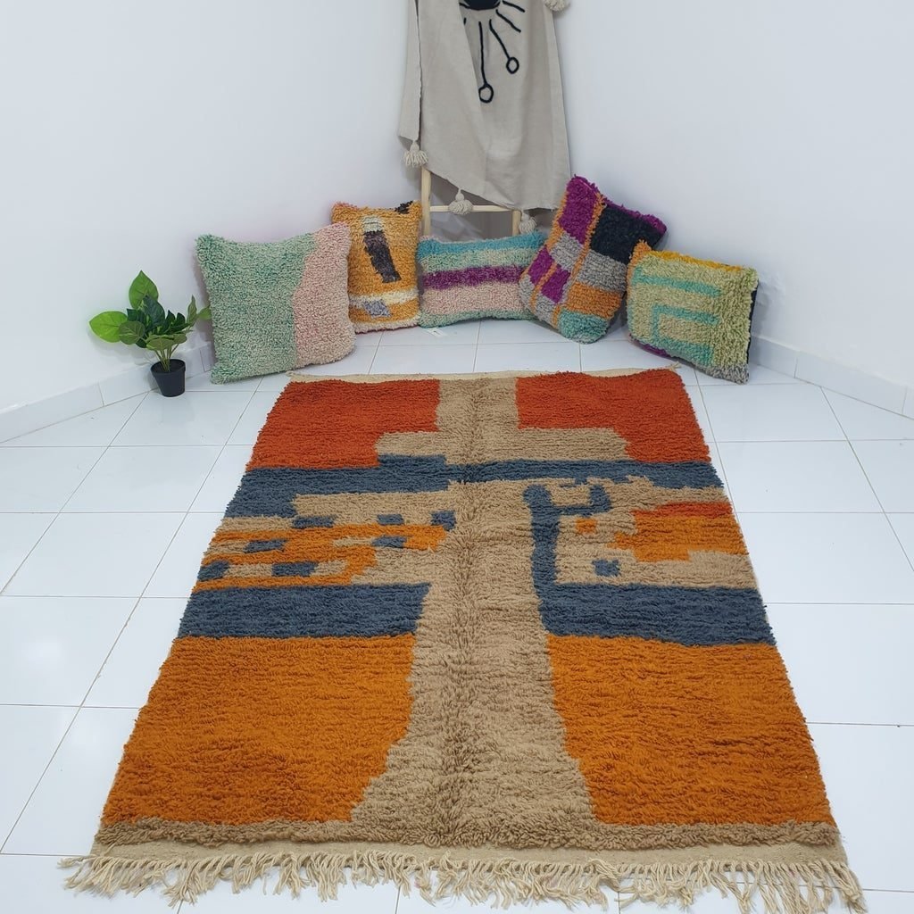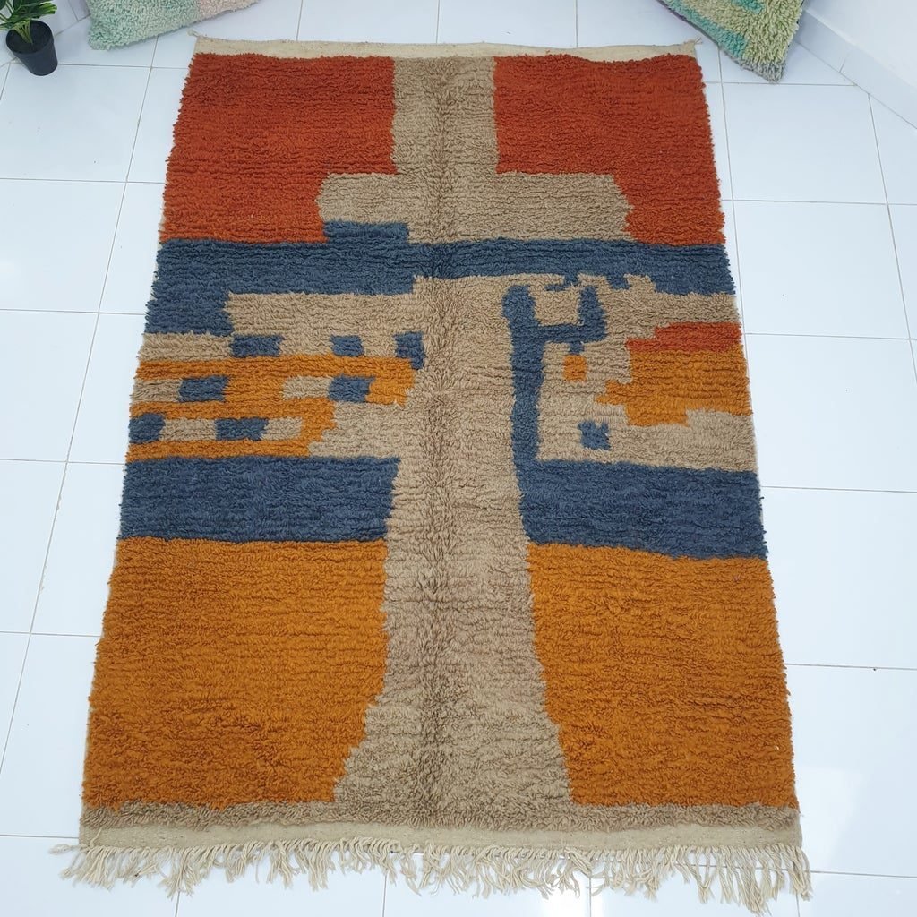 MIBRY | 7×5 Ft | 214×150 cm | Moroccan Colorful Rug | 100% wool handmade