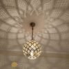 A suspension in the form of an open pressed ceiling lamp about 13.7″ and 21″ in diameter, which will add a touch of craftsmanship to your interior by diffusing a beautiful Moroccan lamp shades on the ceiling as well as the walls, and to illuminate the room.