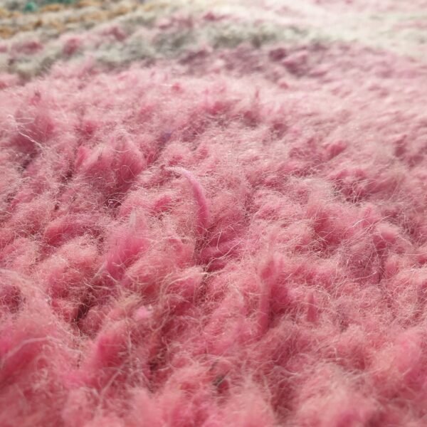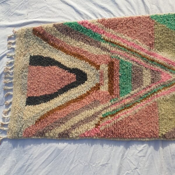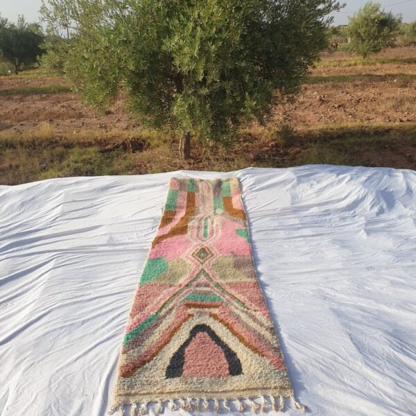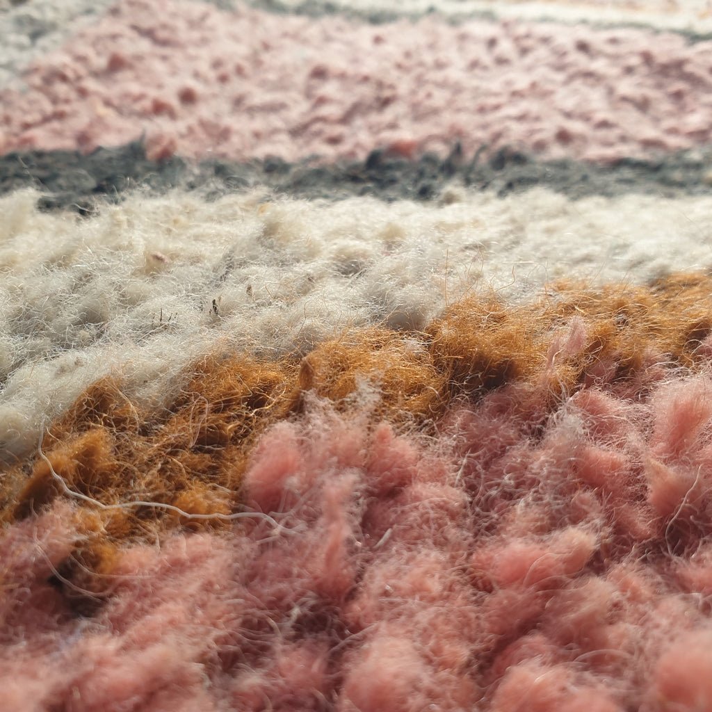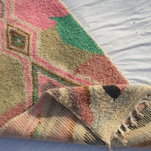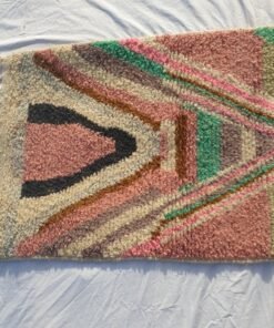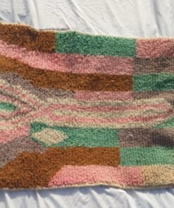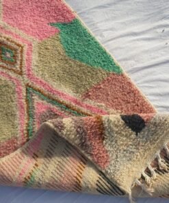 Boujaad rugs originally woven on traditional looms by Berber women in the Atlas Mountains of Morocco. These rugs are all individually handcrafted, each rug is special, unique and different, and you can never find the same pattern. They are made from natural sheep wool with natural dye, and typical knotting techniques practiced by Berber tribes – but with the knot being pulled tighter, those rugs require less wool which allows the weaver to create the intricate geometric patterns things that make Boujaad rugs famous and desired by the whole word and perfect for any indoor or outdoor style.