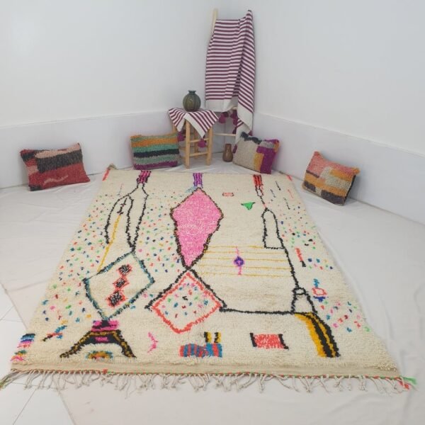 Moroccan White Azilal Rug | MOLINA | 9’6×6′ Ft | 2,94×1,83 m | 100% wool handmade