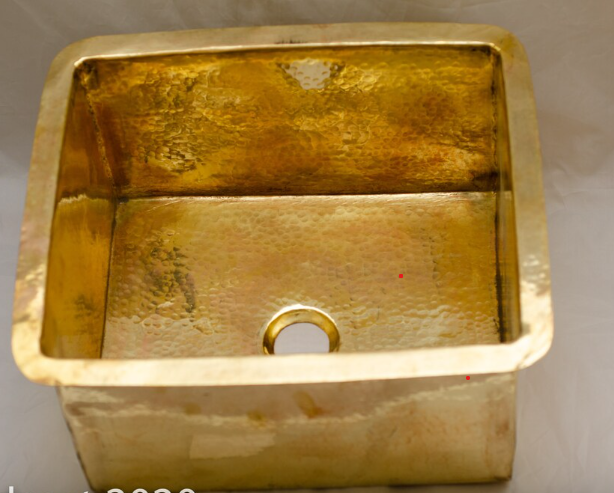 The sink is handcrafted of a thick plaque of unlacquered solid brass. Not the average thin brass. Made for heavy-duty tasks and to be reliable for a lifetime.