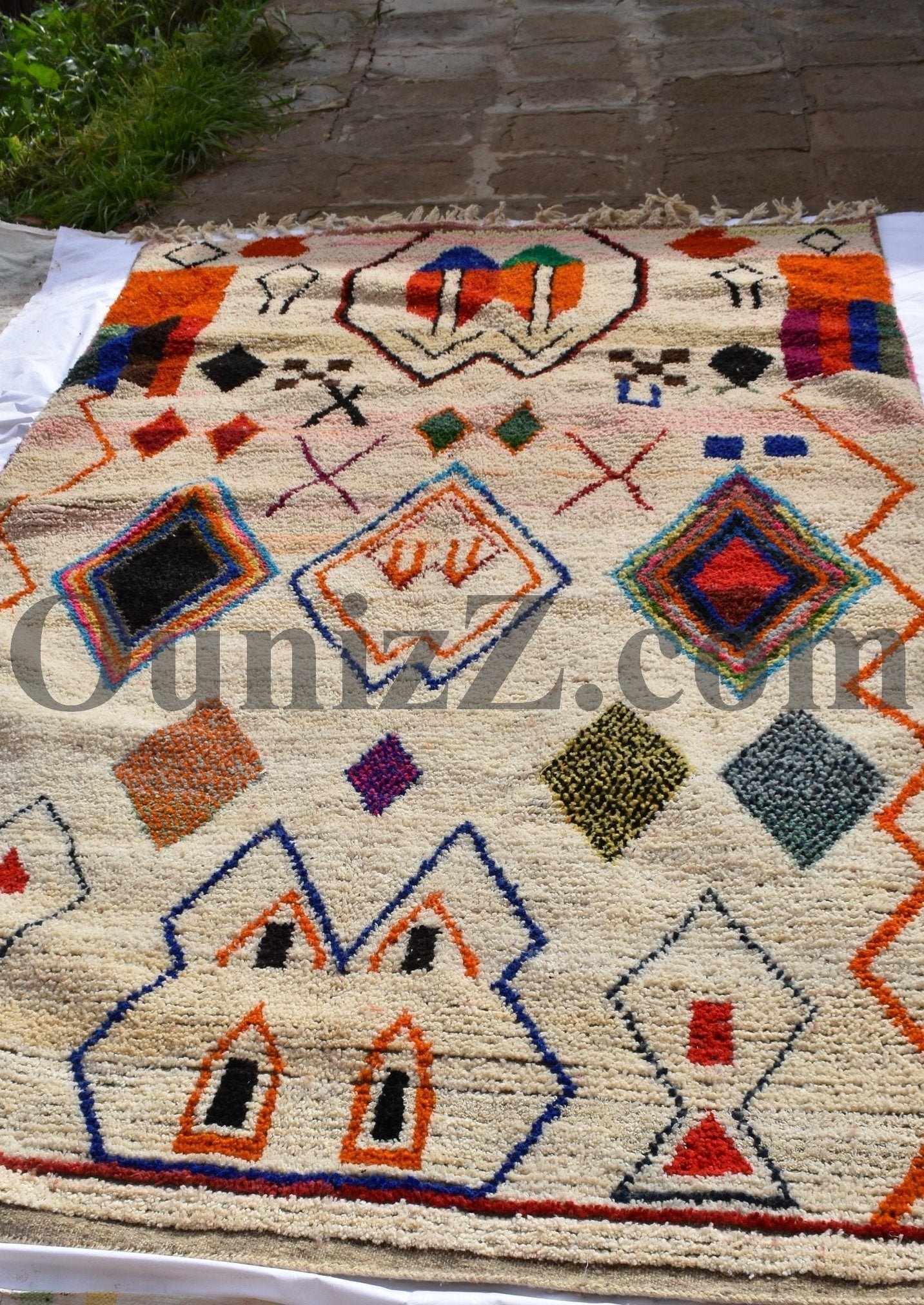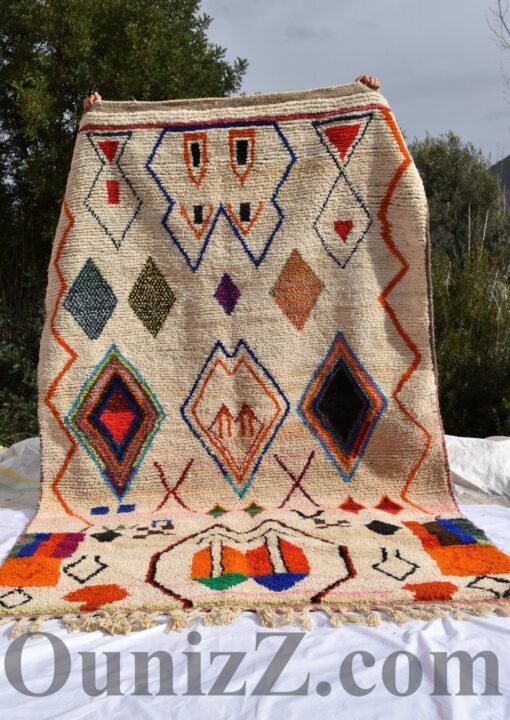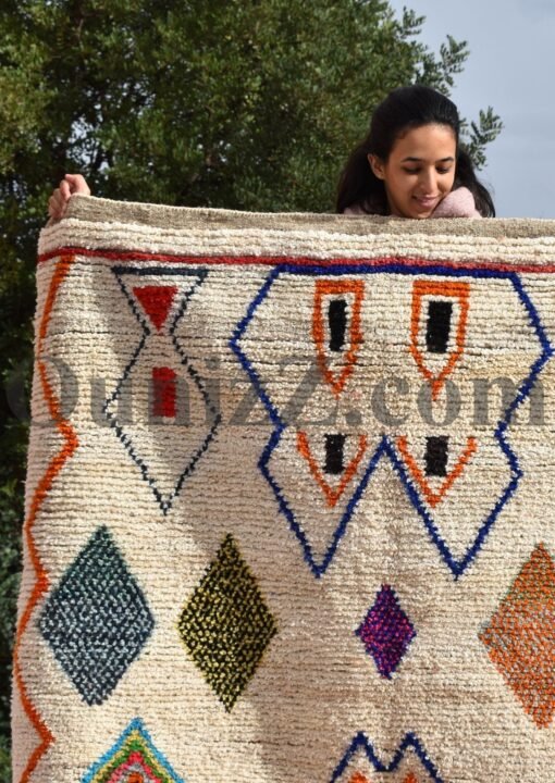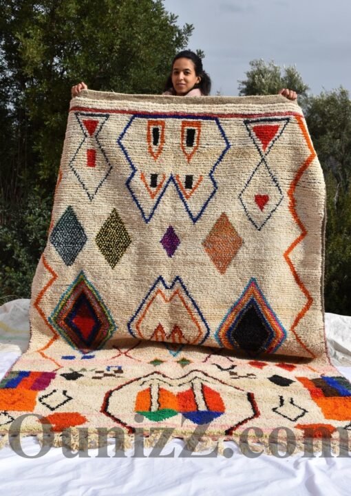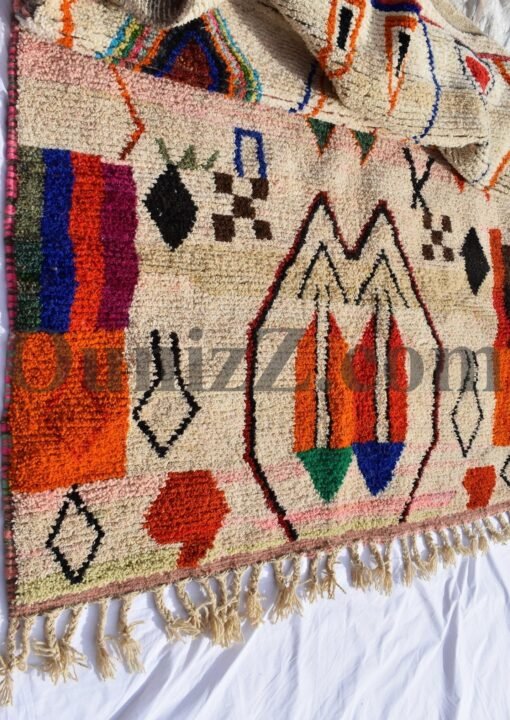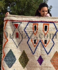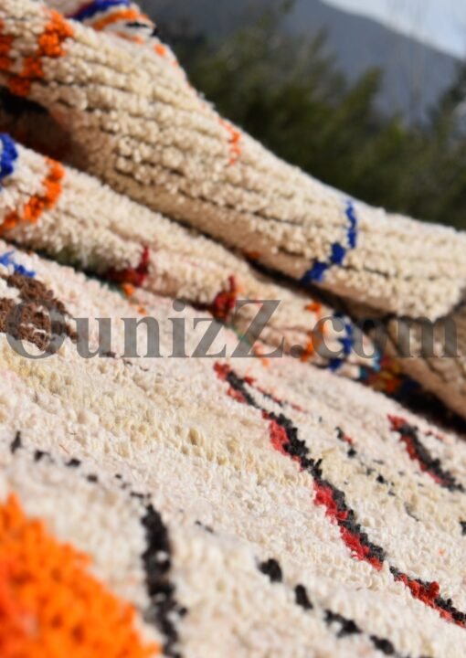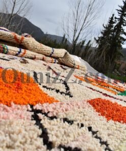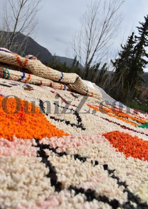 One rug takes lot of time and effort, but can tells a story of life, a story of a woman somewhere in the world trying to make her life and the one of her children better. In the heart of Azilal tribe, located in Demnat a Moroccan Berber region, one of richest parts of the Atlas Mountains, are made those pieces of arts, inspired from the beautiful flowered mountains and the flowing rivers. Azilal, the most beautiful and colorful rug. handmade for self-use or to be a gift during the winter’s long nights. The Azilal rugs reflects the richness of the region. This type of traditional carpets is usually double sided, the fluffy and warmest side for winter, the other side is for summer.
