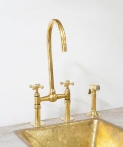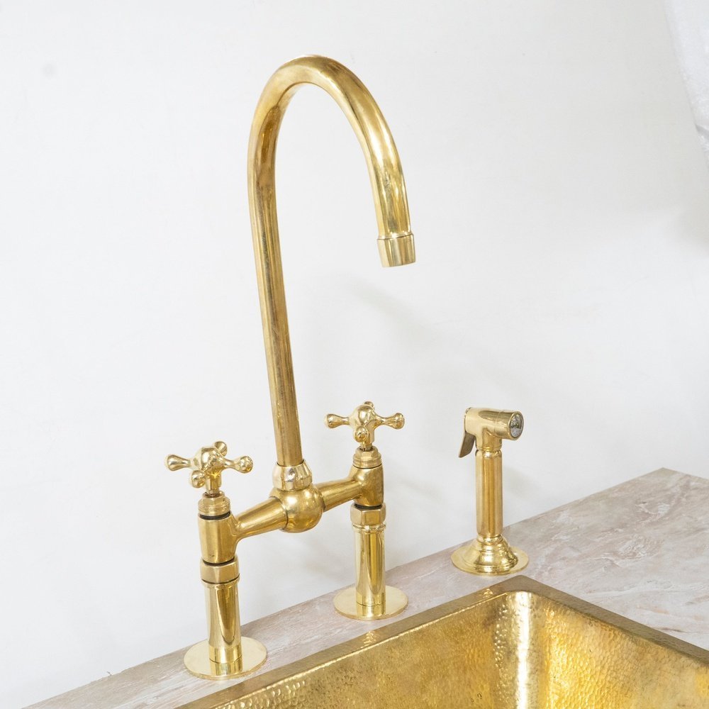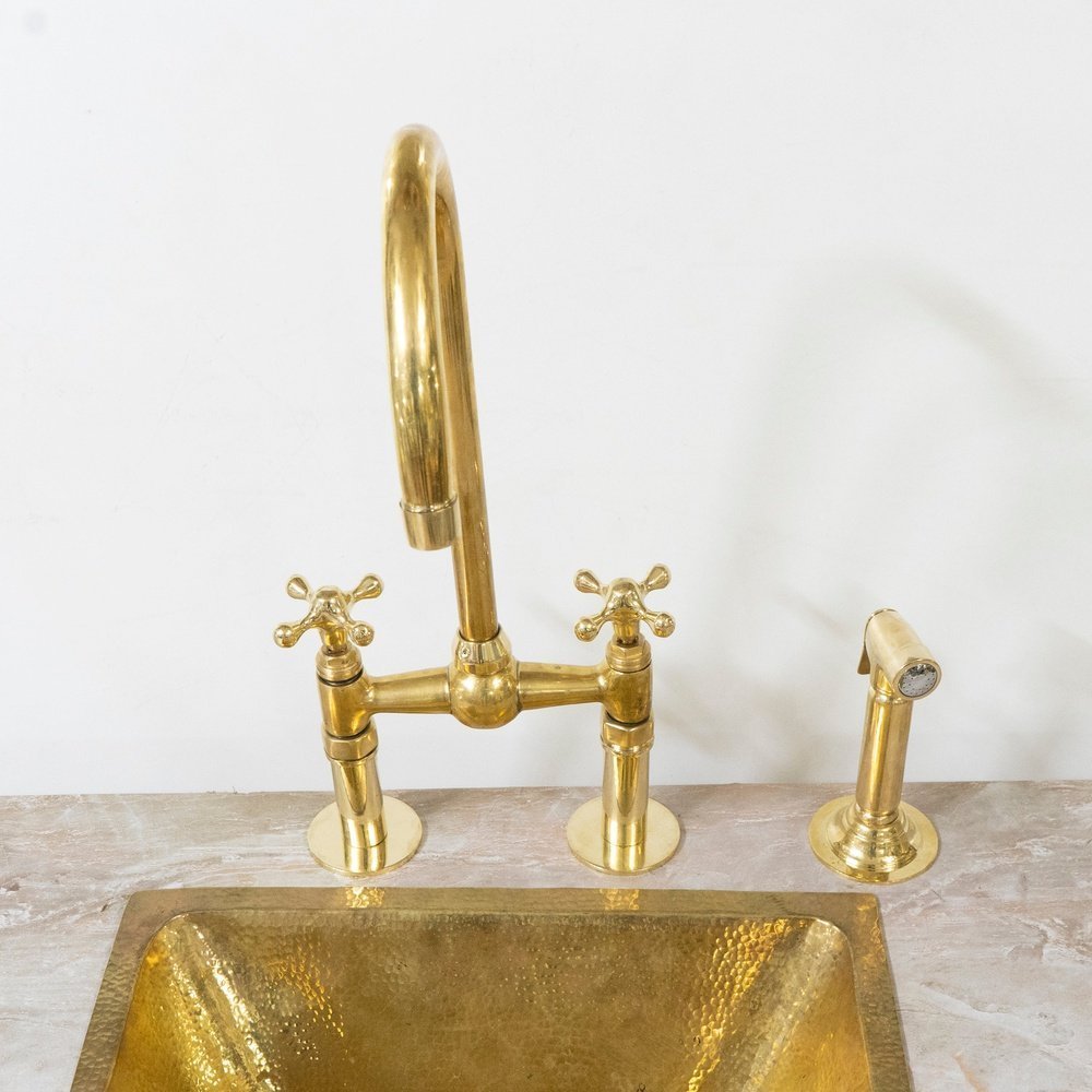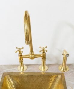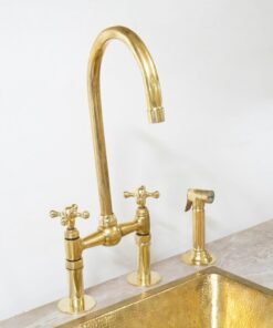 Give your kitchen a modern edge with the Ailey Bridge Faucet. Featuring cross handles, this piece’s elegant gooseneck shape extends over your sink for a streamlined look and feel. Made of brass, it boasts a durable finish that is available in a variety of colors to complement your décor. it includes a water-efficient and eco-friendly aerator.