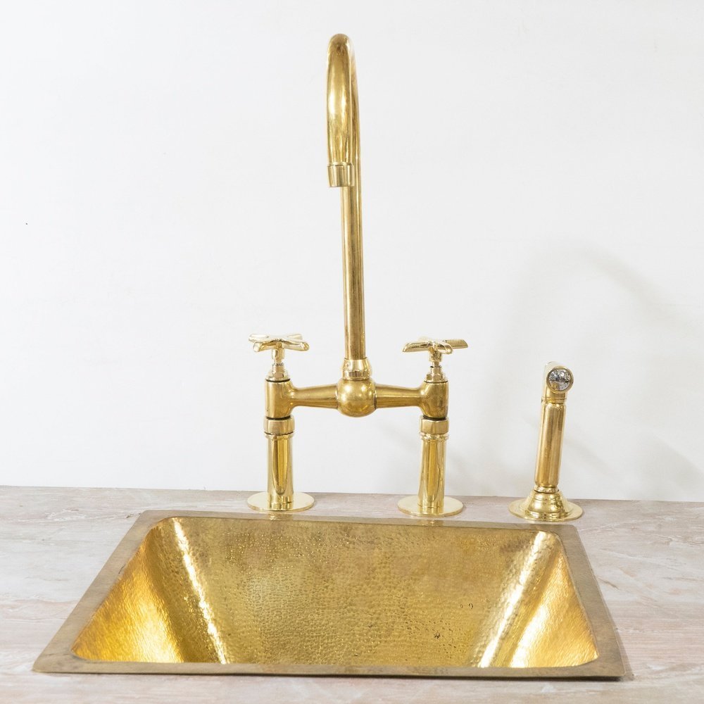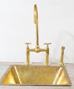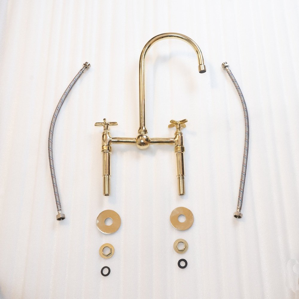 Give your kitchen a modern edge with the Ailey Bridge Faucet. Featuring cross handles, this piece’s elegant gooseneck shape extends over your sink for a streamlined look and feel. Made of brass, it boasts a durable finish that is available in a variety of colors to complement your décor. it includes a water-efficient and eco-friendly aerator.
