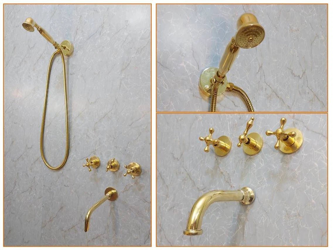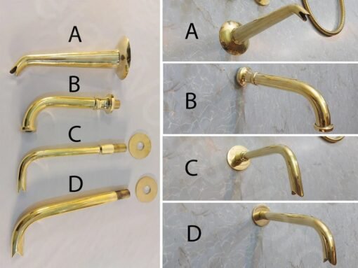 This Handcrafted wall mount tub filler with handheld shower head is perfect for a classic-inspired space. Carefully made by our creative craftsmen. There are five shapes of spouts available. Thus, you can choose the most appropriate one for you and add your own personal touch to your bathroom.