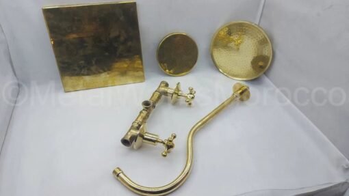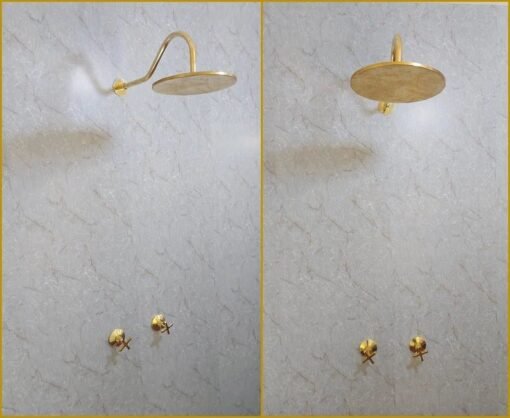 Be the first to review “Unlacquered brass wall mounted shower faucet set with arc shower arm- handmade shower system” Cancel reply