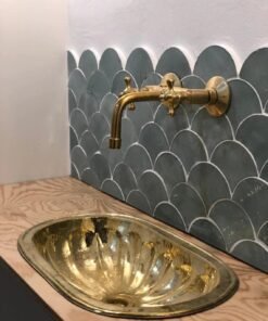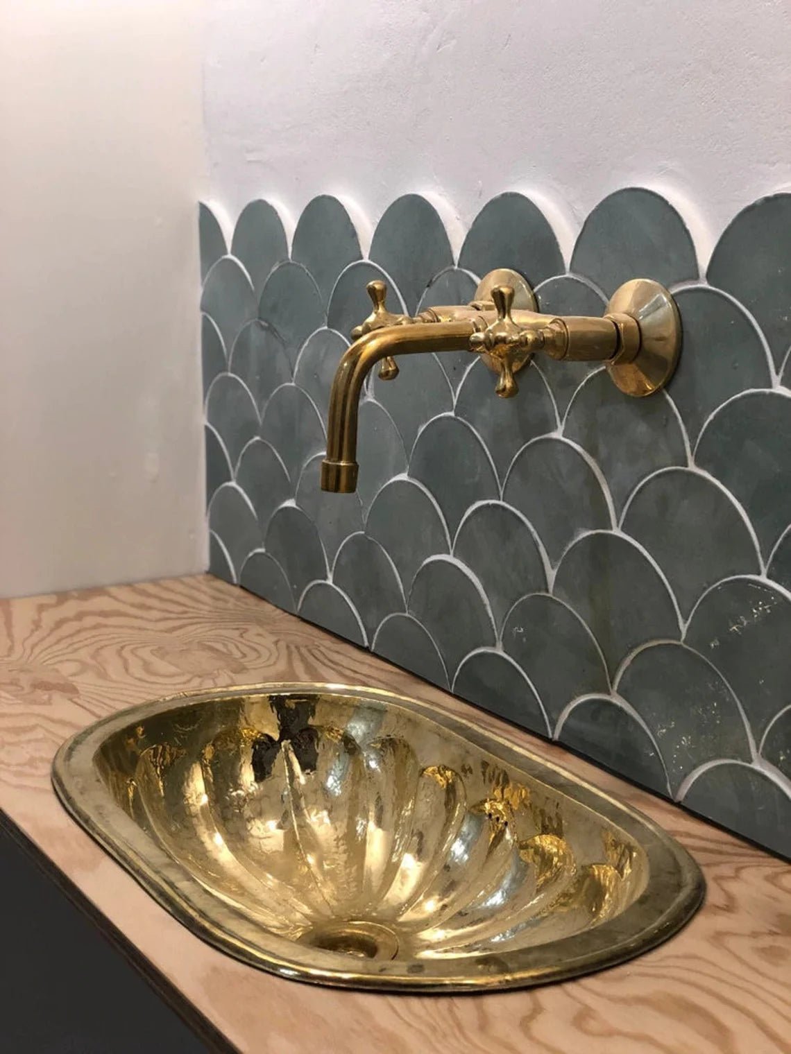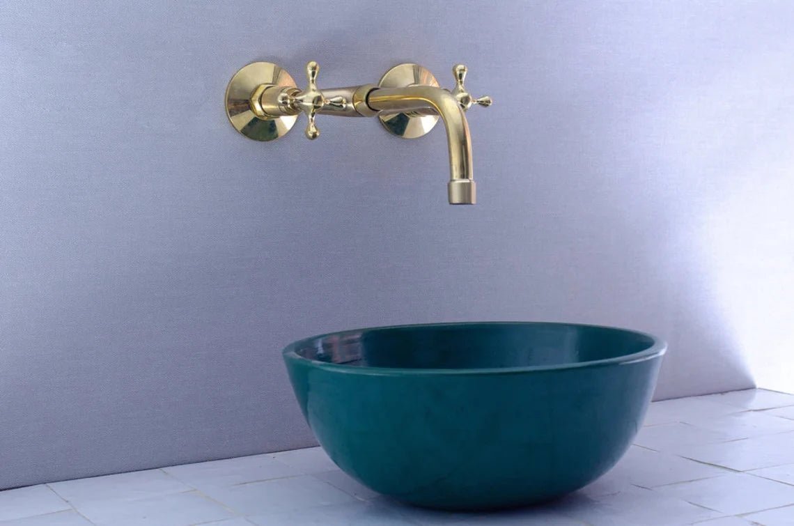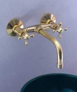 Get this wall mounted unlacquered brass faucet. The unlacquered brass of this faucet will develop a beautiful patina over time for the fans of vintage style.