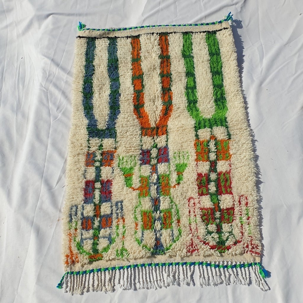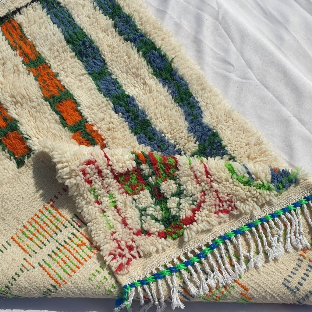 One rug takes lot of time and effort, but can tells a story of life, a story of a woman somewhere in the world trying to make her life and the one of her children better. In the heart of Azilal tribe, located in Demnat a Moroccan Berber region, one of richest parts of the Atlas Mountains, are made those pieces of arts, inspired from the beautiful flowered mountains and the flowing rivers. Azilal, the most beautiful and colorful rug. handmade for self-use or to be a gift during the winter’s long nights. The Azilal rugs reflects the richness of the region. This type of traditional carpets is usually double sided, the fluffy and warmest side for winter, the other side is for summer.