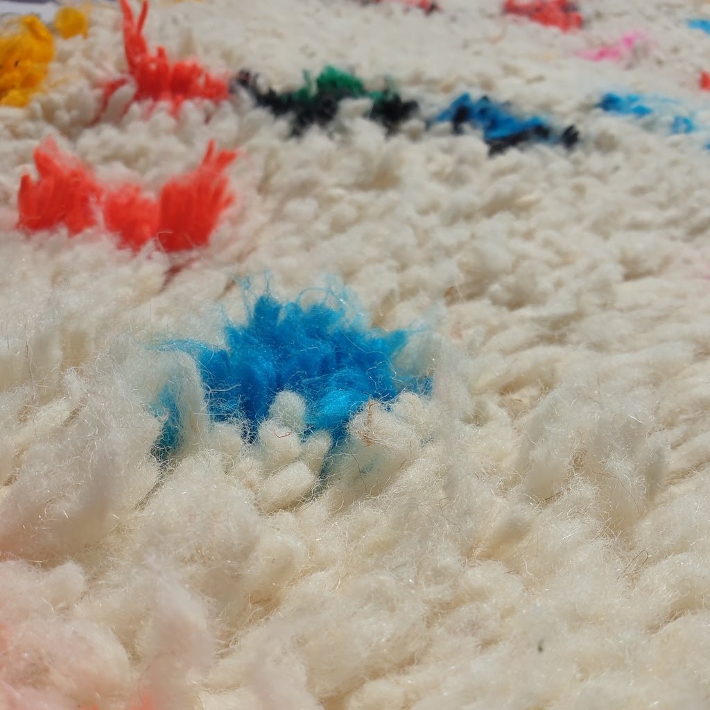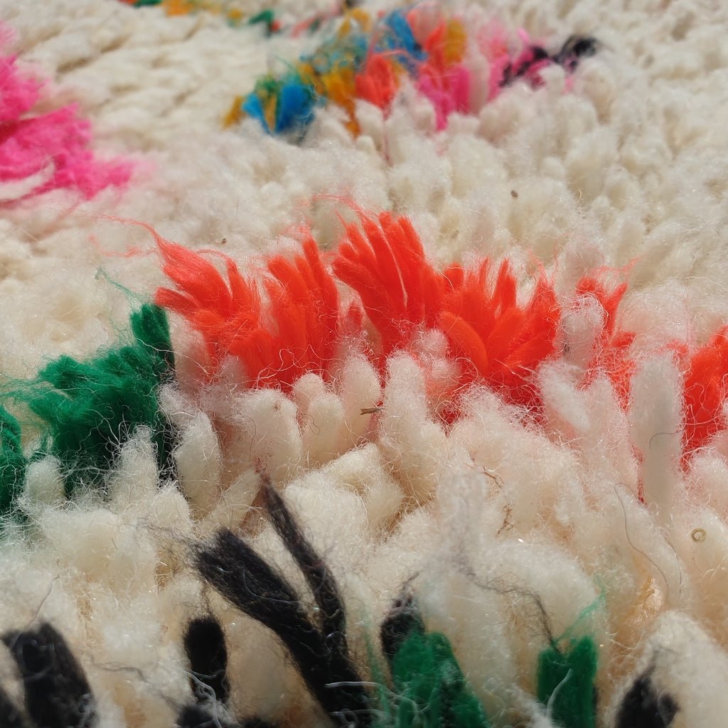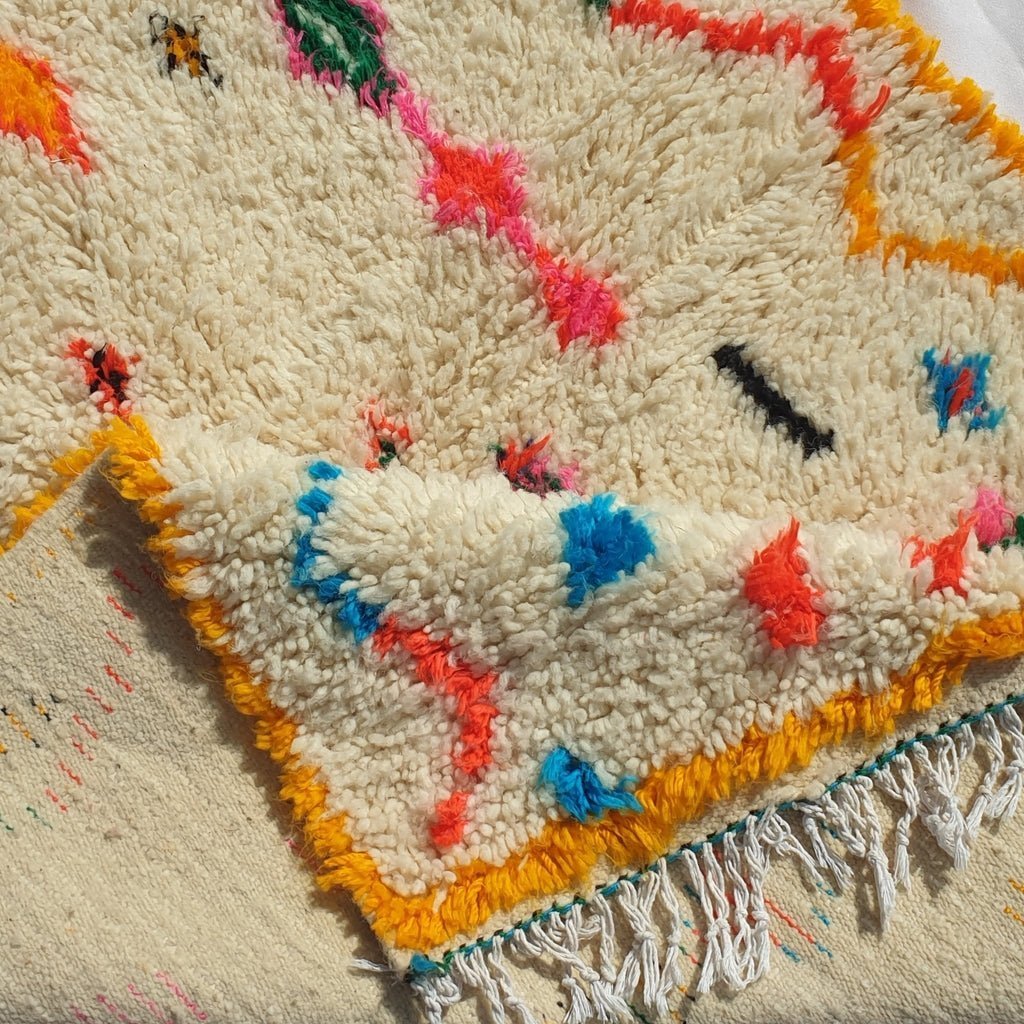 One rug takes lot of time and effort, but can tells a story of life, a story of a woman somewhere in the world trying to make her life and the one of her children better. In the heart of Azilal tribe, located in Demnat a Moroccan Berber region, one of richest parts of the Atlas Mountains, are made those pieces of arts, inspired from the beautiful flowered mountains and the flowing rivers. Azilal, the most beautiful and colorful rug. handmade for self-use or to be a gift during the winter’s long nights. The Azilal rugs reflects the richness of the region. This type of traditional carpets is usually double sided, the fluffy and warmest side for winter, the other side is for summer.