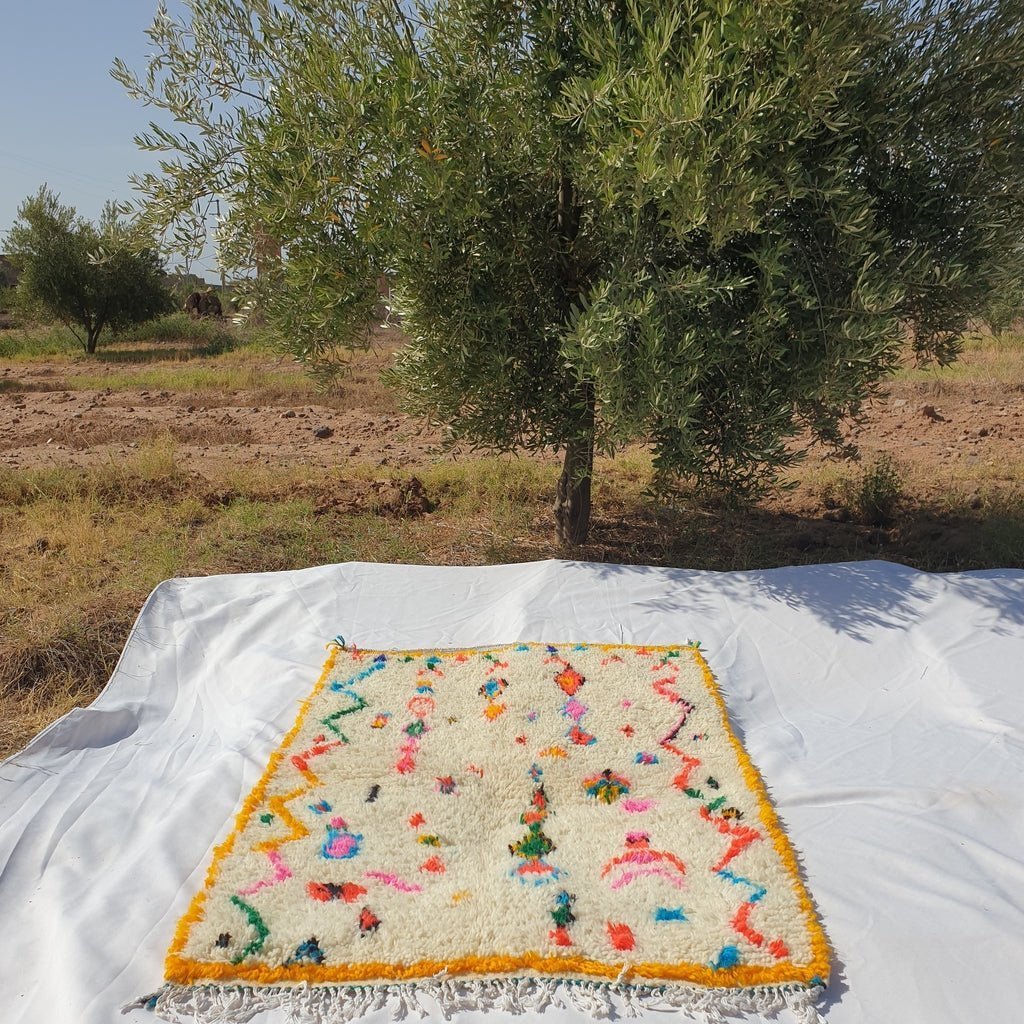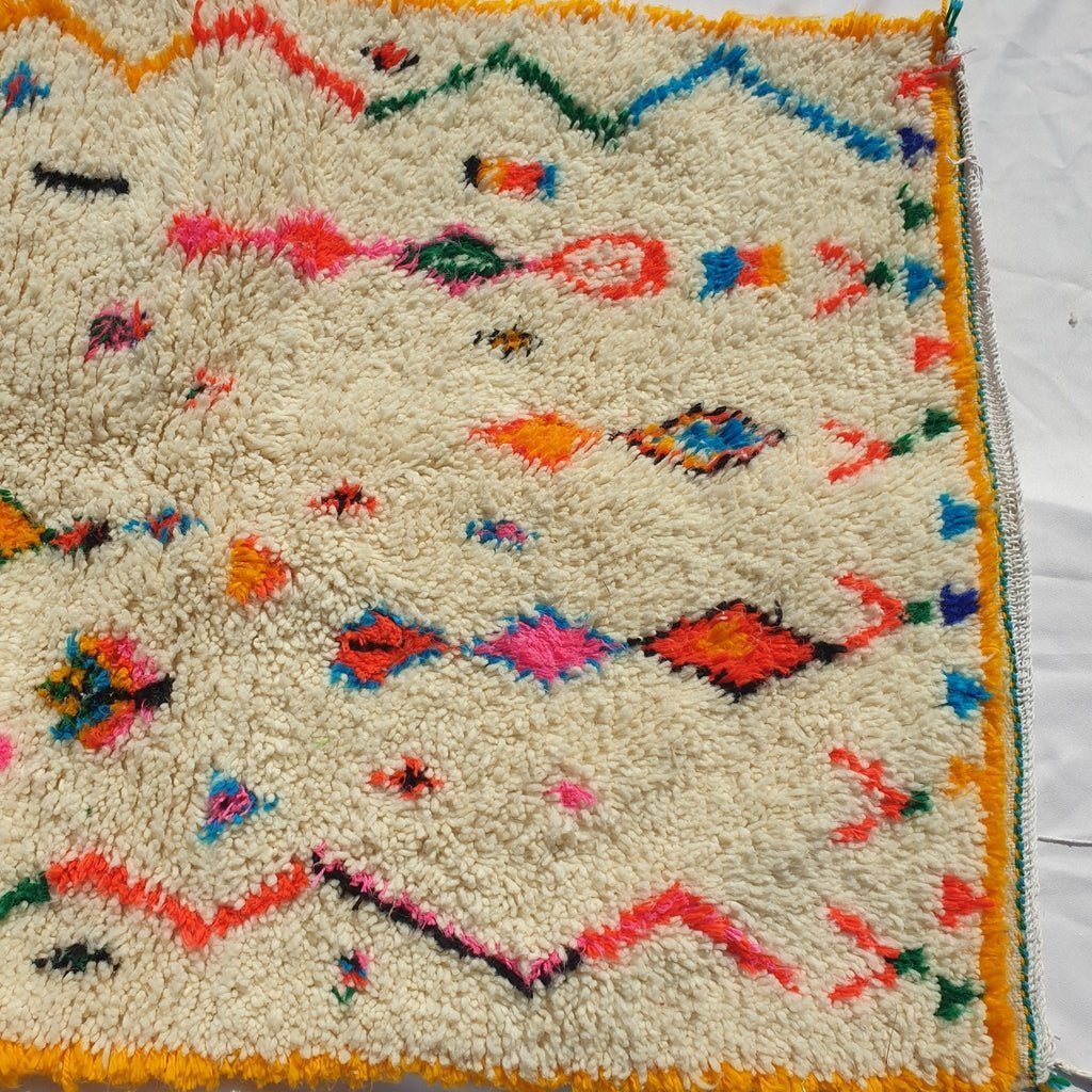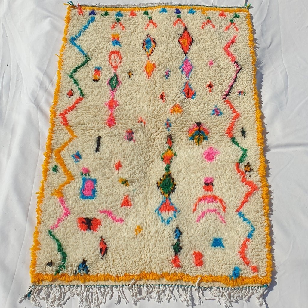 One rug takes lot of time and effort, but can tells a story of life, a story of a woman somewhere in the world trying to make her life and the one of her children better. In the heart of Azilal tribe, located in Demnat a Moroccan Berber region, one of richest parts of the Atlas Mountains, are made those pieces of arts, inspired from the beautiful flowered mountains and the flowing rivers. Azilal, the most beautiful and colorful rug. handmade for self-use or to be a gift during the winter’s long nights. The Azilal rugs reflects the richness of the region. This type of traditional carpets is usually double sided, the fluffy and warmest side for winter, the other side is for summer.