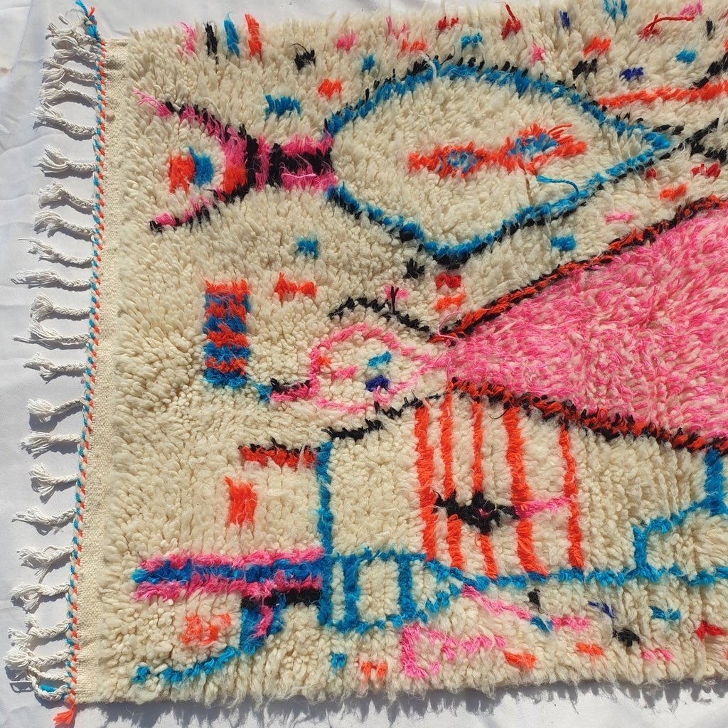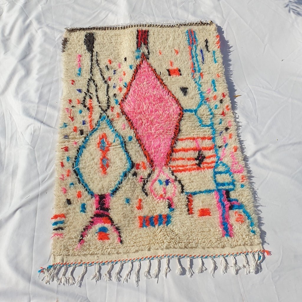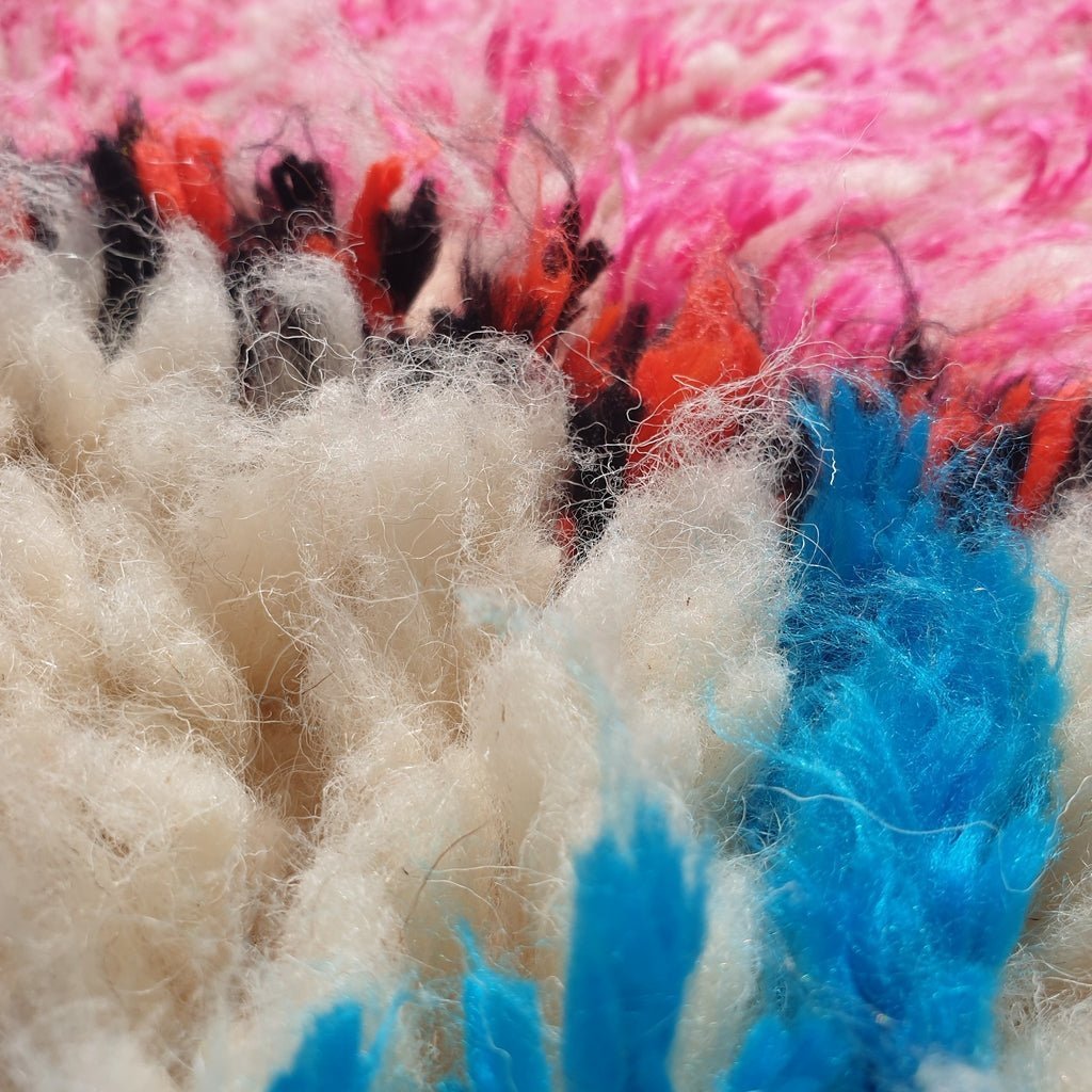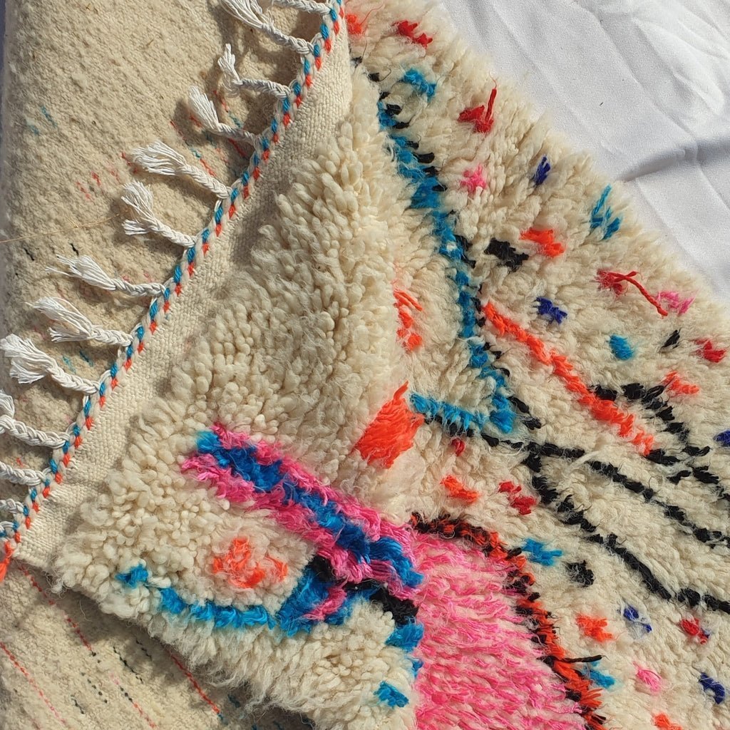 One rug takes lot of time and effort, but can tells a story of life, a story of a woman somewhere in the world trying to make her life and the one of her children better. In the heart of Azilal tribe, located in Demnat a Moroccan Berber region, one of richest parts of the Atlas Mountains, are made those pieces of arts, inspired from the beautiful flowered mountains and the flowing rivers. Azilal, the most beautiful and colorful rug. handmade for self-use or to be a gift during the winter’s long nights. The Azilal rugs reflects the richness of the region. This type of traditional carpets is usually double sided, the fluffy and warmest side for winter, the other side is for summer.