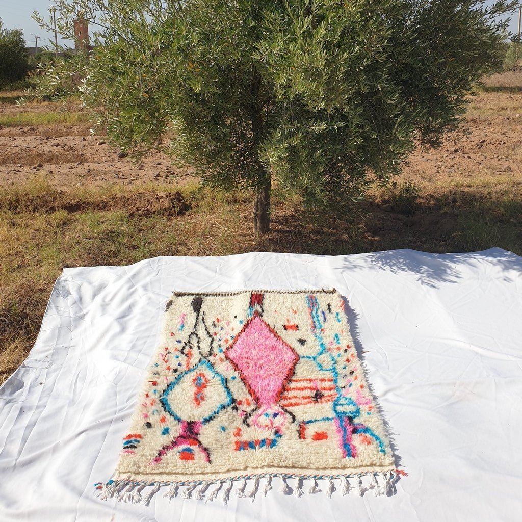 You are viewing White Azilal Moroccan Rug | Vintage Moroccan Rug | Vintage Berber Rug | Moroccan Area Rug | Authentic Handmade Moroccan Wool Rug |Â 5×3’3 ft “